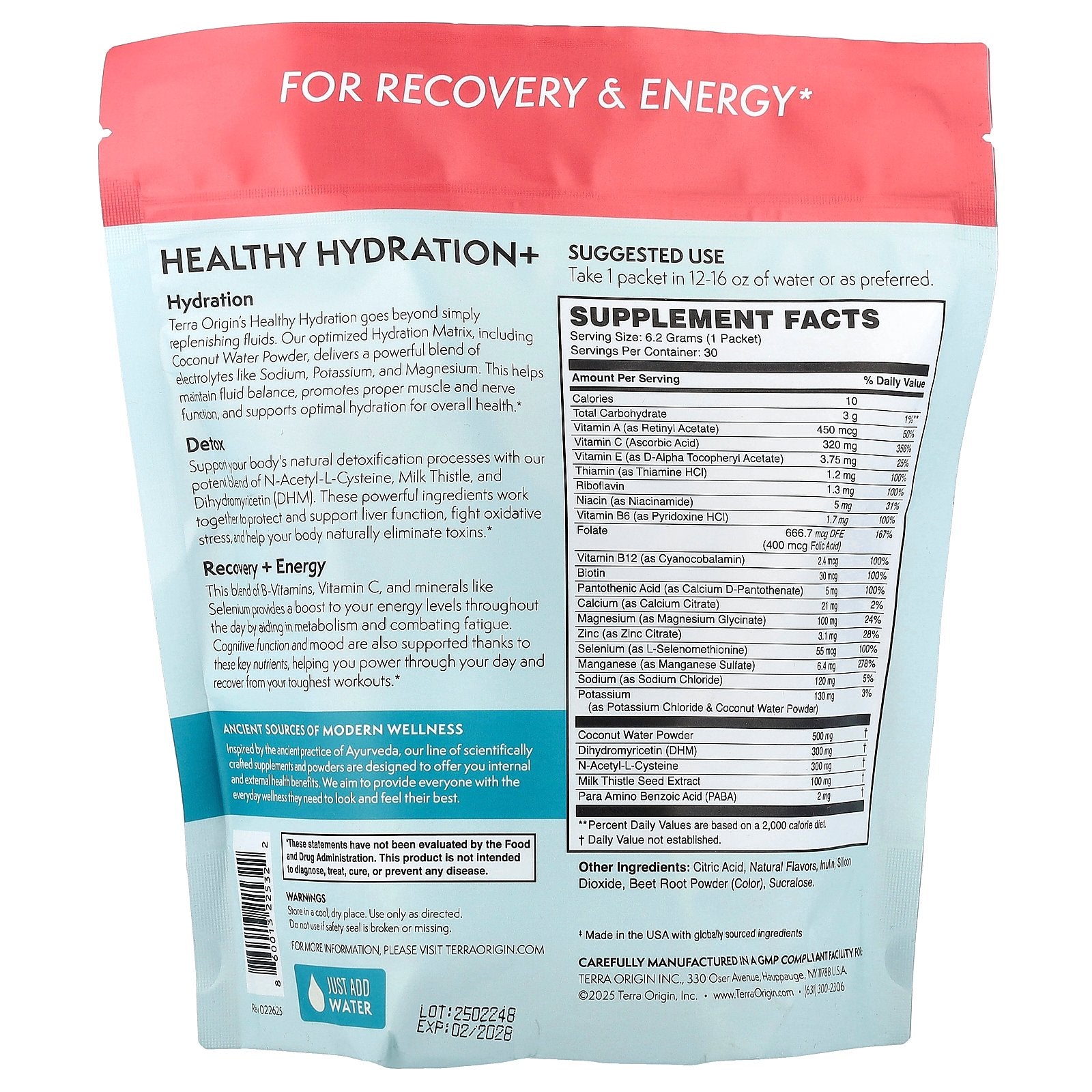 Terra Origin's Healthy Hydration goes beyond simply replenishing fluids. Our optimized Hydration Matrix, including Coconut Water Powder, delivers a powerful blend of electrolytes like Sodium, Potassium, and Magnesium. This helps maintain fluid balance, promotes proper muscle and nerve function, and supports optimal hydration for overall health.