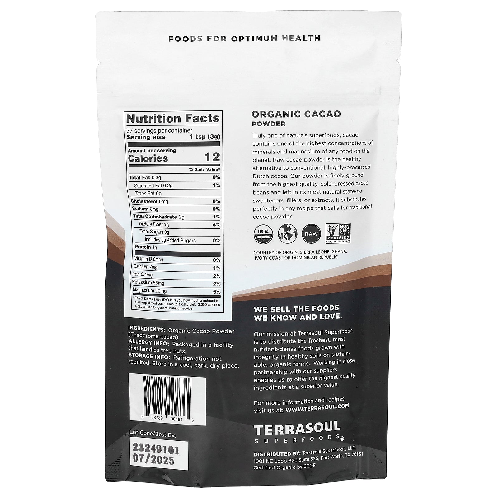 Our mission at Terrasoul Superfoods is to distribute the freshest, most nutrient-dense foods grown with integrity in healthy soils on sustainable, organic farms. Working in close partnership with our suppliers enables us to offer the highest quality ingredients at a superior value.