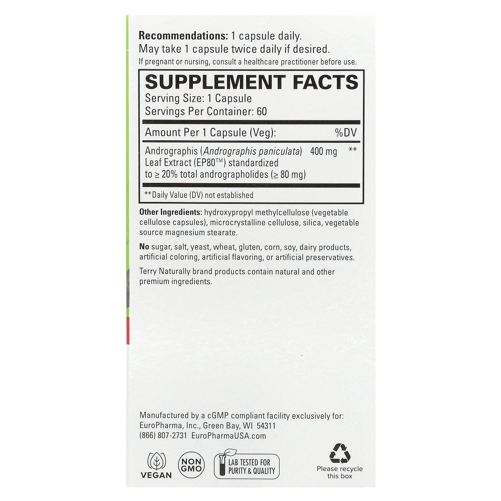 Andrographis (Andrographis paniculata) Leaf Extract (EP80™), standardized to ≥ 20% total andrographolides (≥ 80 mg) |