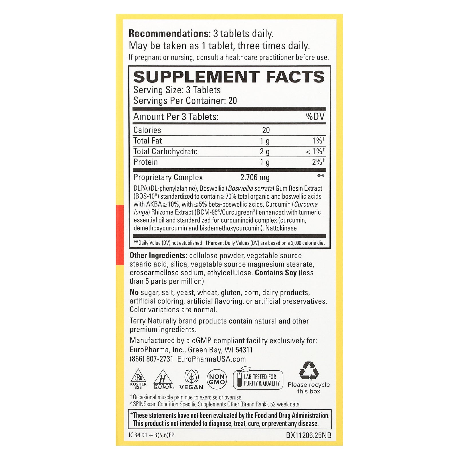 Proprietary Complex DLPA (DL-phenylalanine), Boswellia (Boswellia serrata) Gum Resin Extract (BOS-10™) standardized to contain > 70% Total Organic and Boswellic Acids with AKBA 2 10%, with s 5% beta-boswellic acids, Curcumin (Curcuma longa) Rhizome Extract (BCM-5®/Curcugreen®) enhanced with turmeric essential oil and standardized for curcuminoid complex (curcumin, demethoxycurcumin and bisdemethoxycurcumin), Nattokinase |