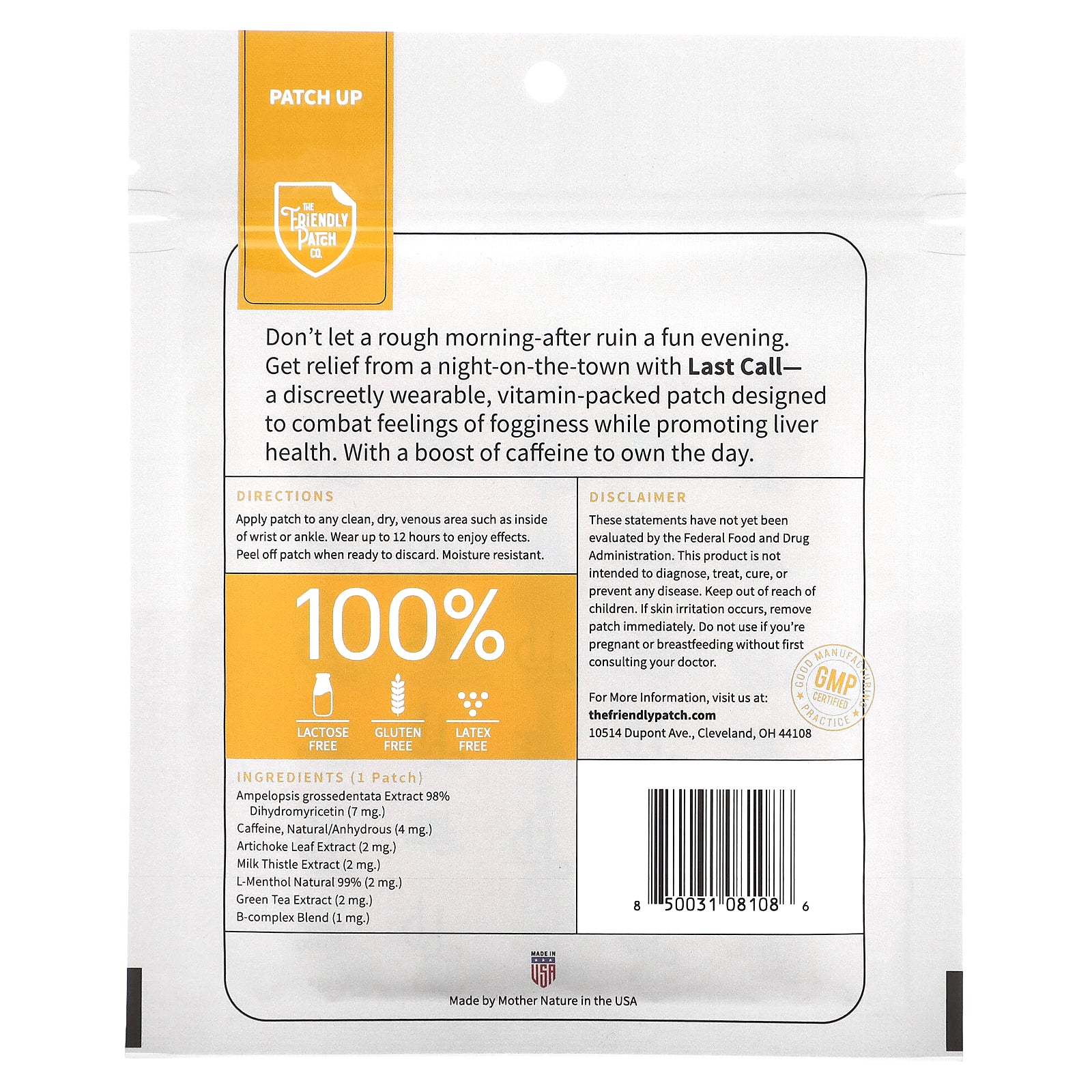 Don't let a rough morning-after ruin a fun evening. Get relief from a night-on-the-town with Last Call- a discreetly wearable, vitamin-packed patch designed to combat feelings of fogginess while promoting liver health. With a boost of caffeine to own the day.