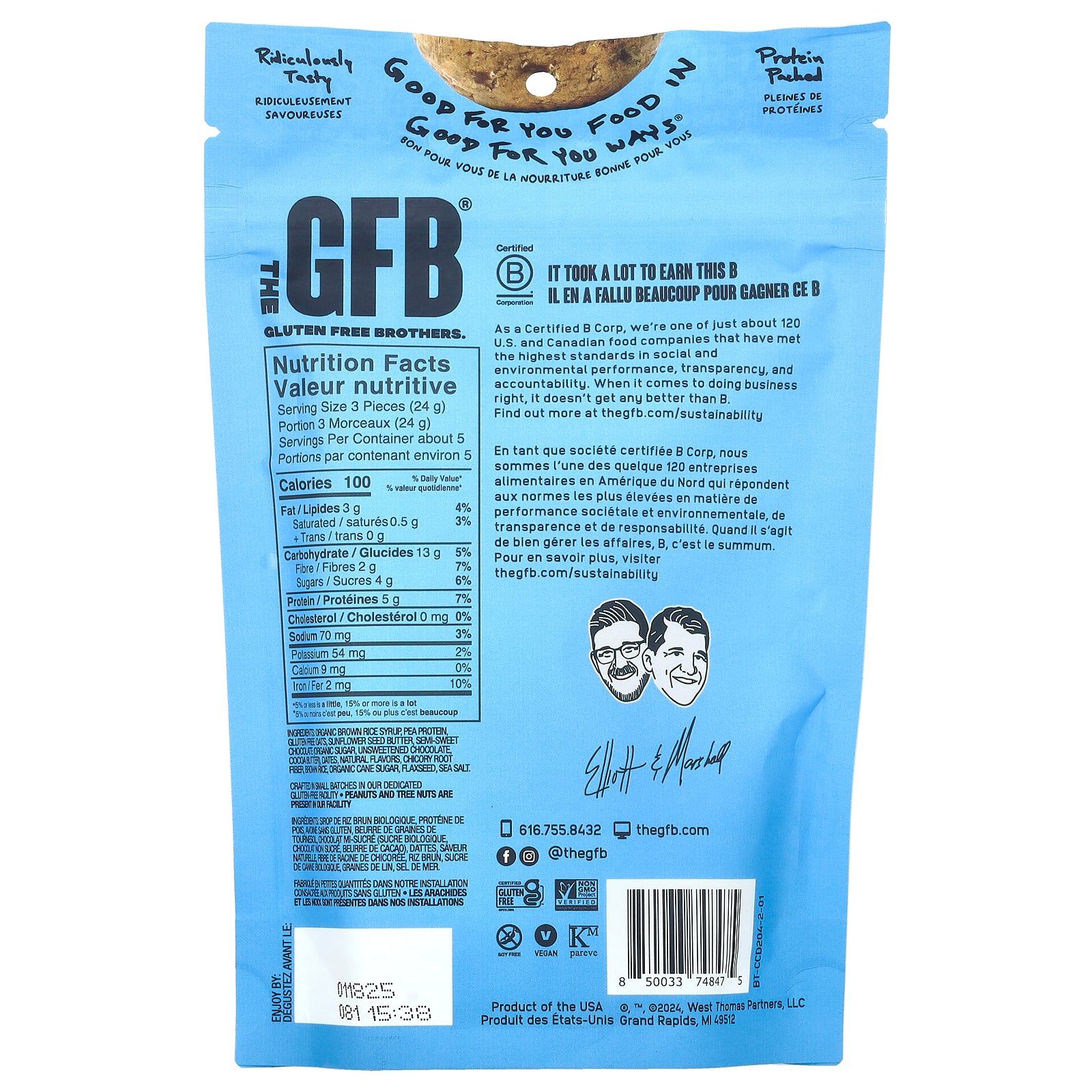 Crafted in small batches in our dedicated Gluten-free facility. Peanuts and tree nuts are present in our facility.