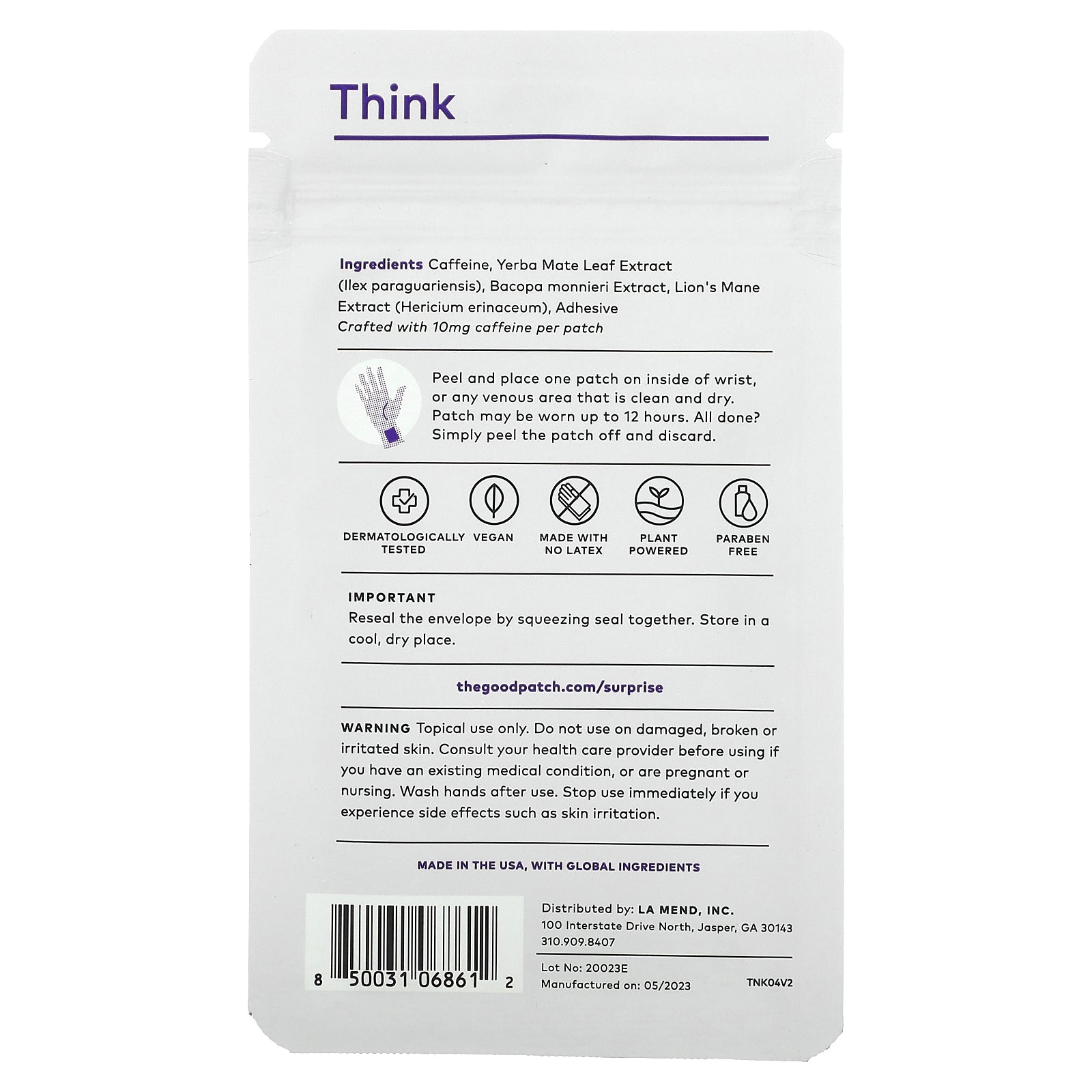 Caffeine, yerba mate leaf extract (ilex paraguariensis), bacopa monnieri extract, lion's mane extract (hericium erinaceum), adhesive crafted with 10 mg caffeine per patch.