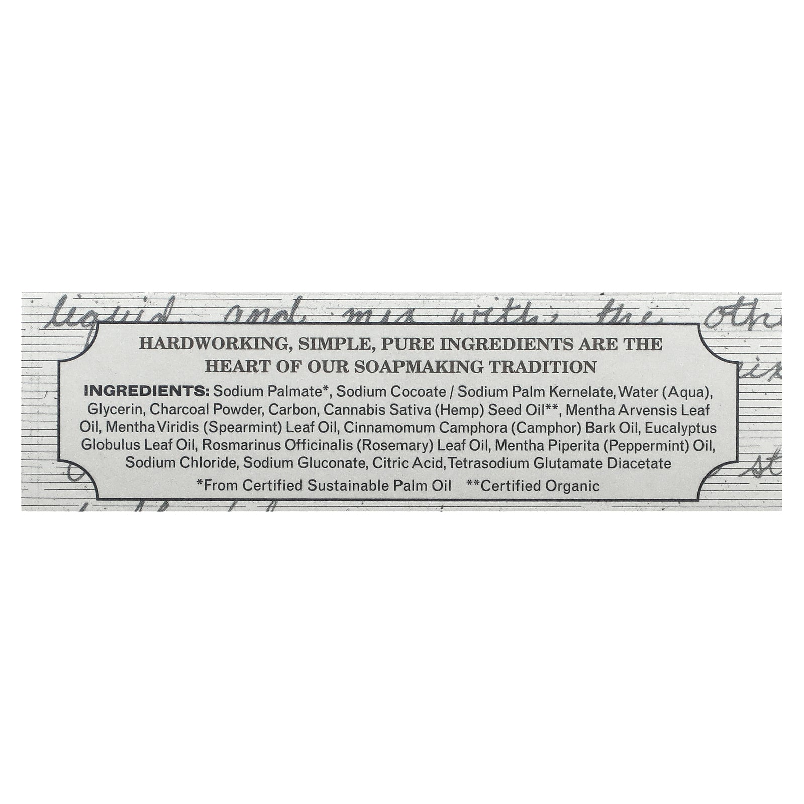 Sodium palmate*, sodium cocoate/sodium palm kernelate, water (aqua), glycerin, charcoal powder, carbon, cannabis sativa (hemp) seed oil**, mentha arvensis leaf oil, cinnamon camphora (camphor) bark oil, eucalyptus globulus leaf oil, rosmarinus officinalis (rosemary) leaf oil, mentha piperita (peppermint) oil, sodium chloride, sodium gluconate, citric acid, tetrasodium glutamate diacetate.