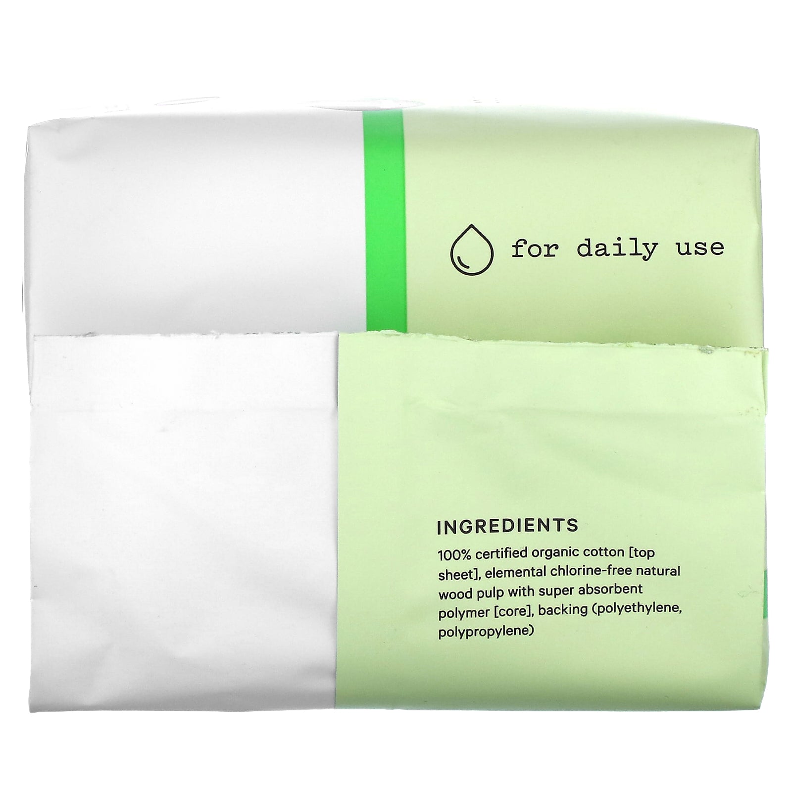 100% certified organic cotton [top sheet], elemental chlorine-free natural wood pulp with super absorbent polymer [core], backing (polyethylene, polypropylene).