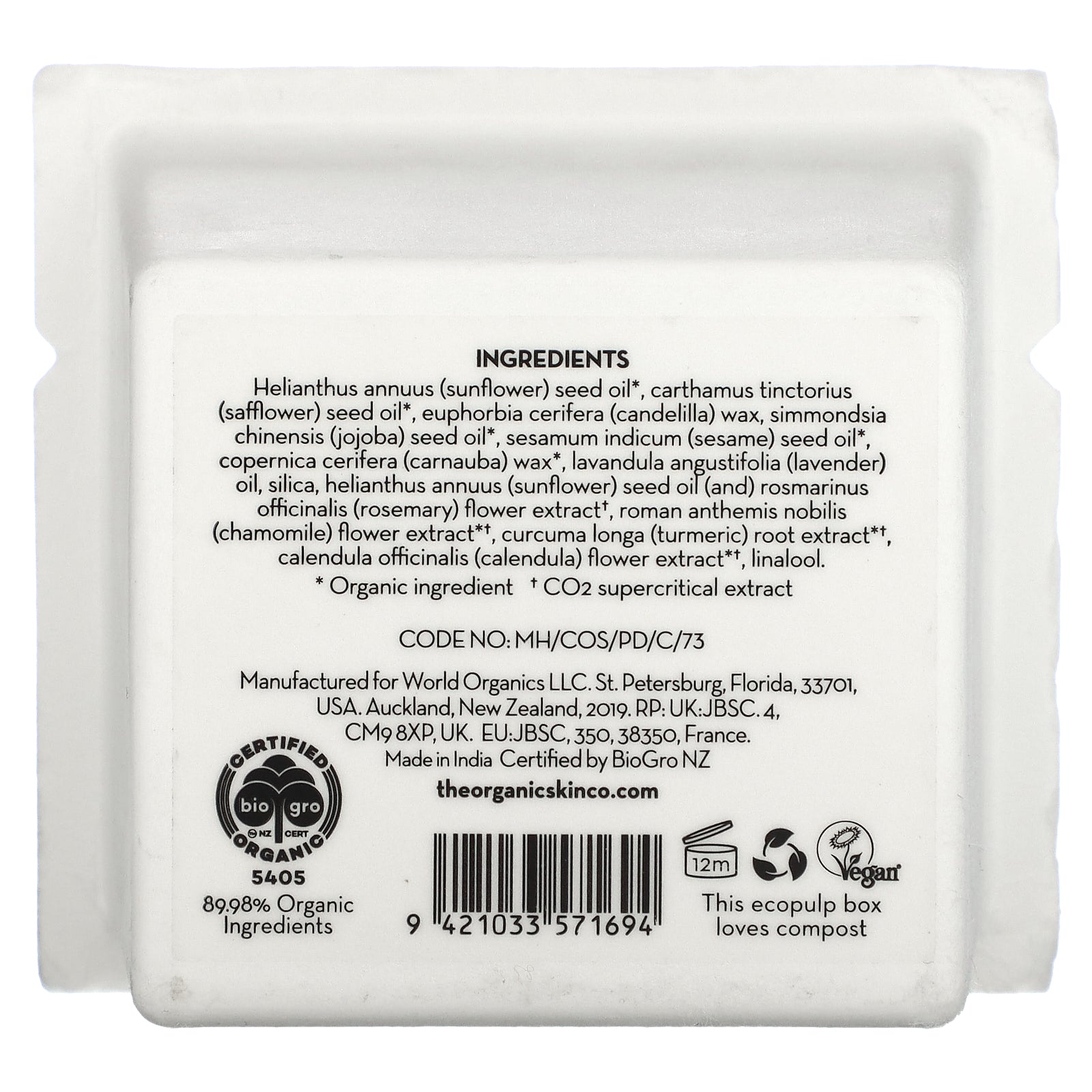 Helianthus annuus (sunflower) seed oil*, carthamus tinctorius (safflower) seed oil*, euphorbia cerifera (candelilla) wax, simmondsia chinensis (jojoba) seed oil*, sesamum indicum (sesame) seed oil*, copernica cerifera (carnauba) wax*, lavandula angustifolia (lavender) oil, silica, helianthus annuus (sunflower) seed oil (and) rosmarinus officinalis (rosemary) flower extract†, roman anthemis nobilis (chamomile) flower extract*†, curcuma longa (turmeric) root extract*†, calendula officinalis (calendula) flower extract*†, linalool.