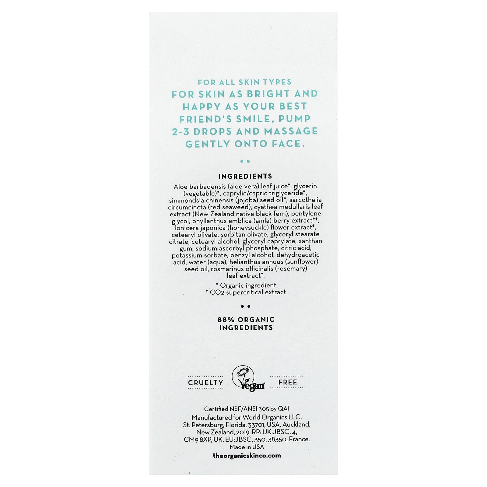 Aloe barbadensis (aloe vera) leaf juice *, glycerin (vegetable) *, caprylic/capric triglyceride *, simmondsia chinensis (jojoba) seed oil *, sarcothalia circumcincta (red seaweed), cyathea medullaris leaf extract (New Zealand native black fern), pentylene glycol, phyllanthus emblica (amla) berry extract*†, lonicera japonica (honeysuckle) flower extract†, cetearyl olivate, sorbitan olivate, glyceryl stearate citrate, cetearyl alcohol, glyceryl caprylate, xanthan gum, sodium ascorbyl phosphate, citric acid, potassium sorbate, benzyl alcohol, dehydroacetic acid, water (aqua), helianthus annuus (sunflower) seed oil, rosmarinus officinalis (rosemary) leaf extract†.