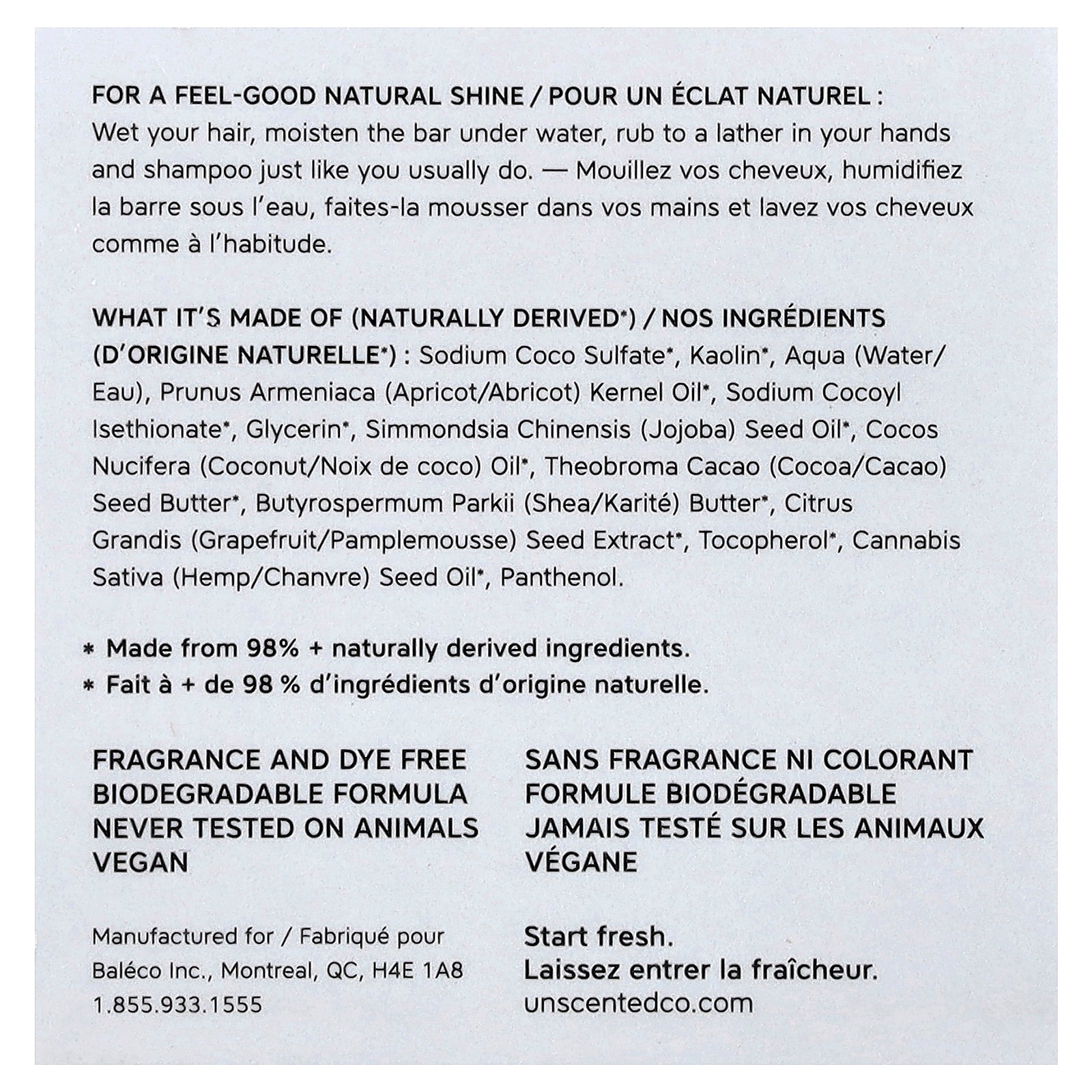 What It's Made Of (Naturally Derived*): Sodium coco sulfate *, kaolin *, aqua (water/ eau), prunus armeniaca (apricot/abricot) kernel oil *, sodium cocoyl isethionate *, glycerin *, simmondsia chinensis (jojoba) seed oil *, cocos nucifera (coconut/noix de coco) oil *, theobroma cacao (cocoa/cacao) seed butter *, butyrospermum parkii (shea/karité) butter *, citrus grandis (grapefruit/pamplemousse) seed extract *, tocopherol *, cannabis sativa (hemp/chanvre) seed oil *, panthenol.