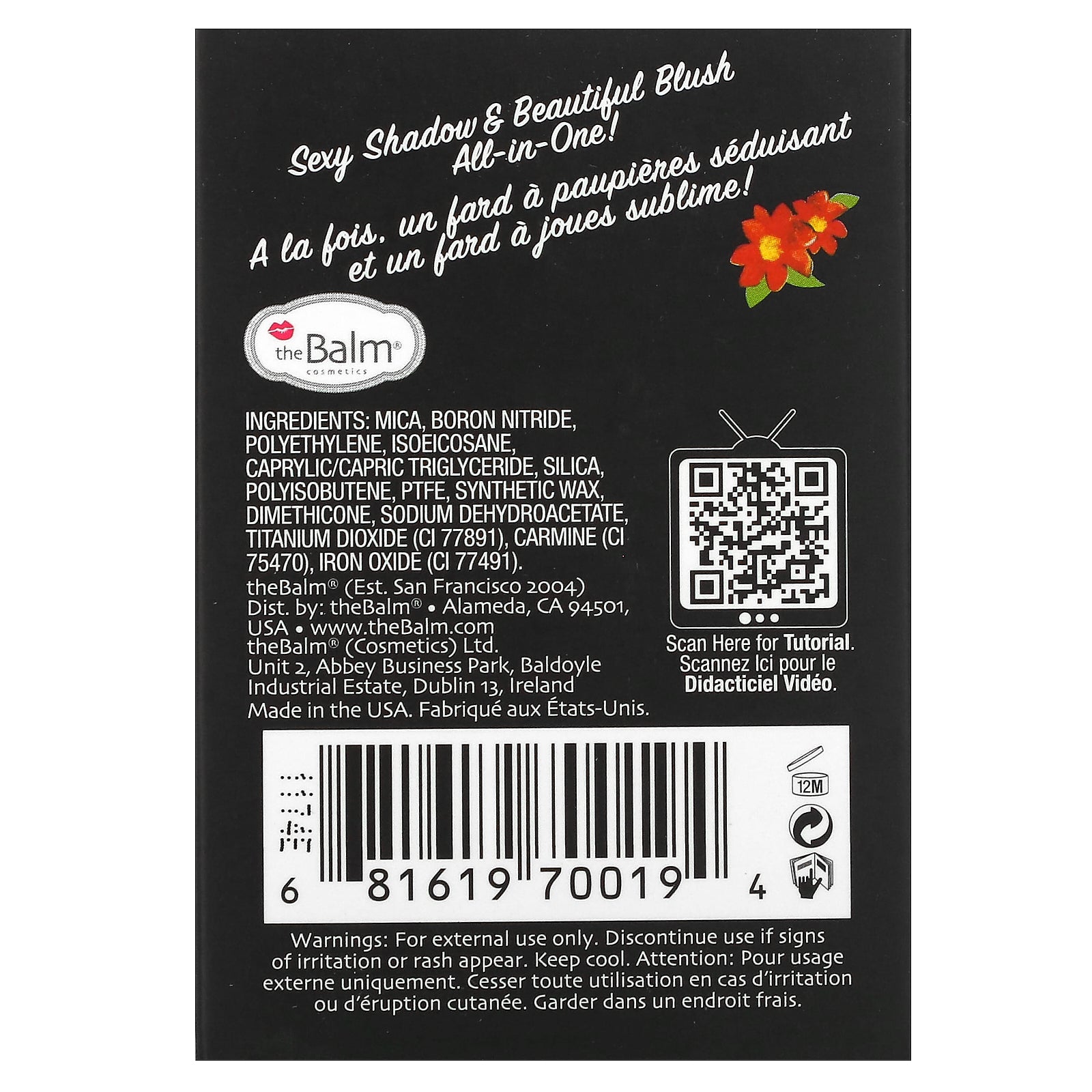 Mica, boron nitride, polyethylene, isoeicosane, caprylic/capric triglyceride, silica, polyisobutene, ptfe, synthetic wax, dimethicone, sodium dehydroacetate, titanium dioxide (ci 77891), carmine (ci 75470), iron oxide (ci 77491).