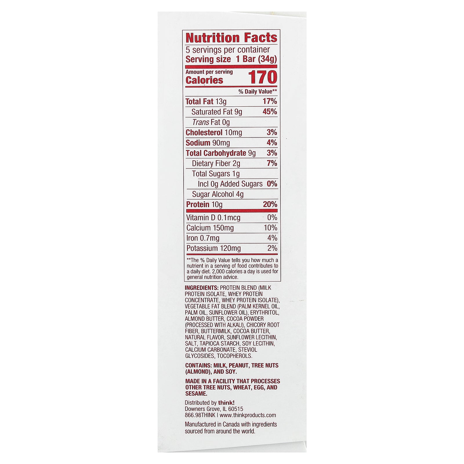 Protein blend (milk protein isolate, whey protein concentrate, whey protein isolate), vegetable fat blend (palm kernel oil, palm oil, sunflower oil), erythritol, almond butter, cocoa powder (processed with alkali), chicory root fiber, buttermilk, cocoa butter, natural flavor, sunflower lecithin, salt, tapioca starch, soy lecithin, calcium carbonate, steviol glycosides, tocopherols.