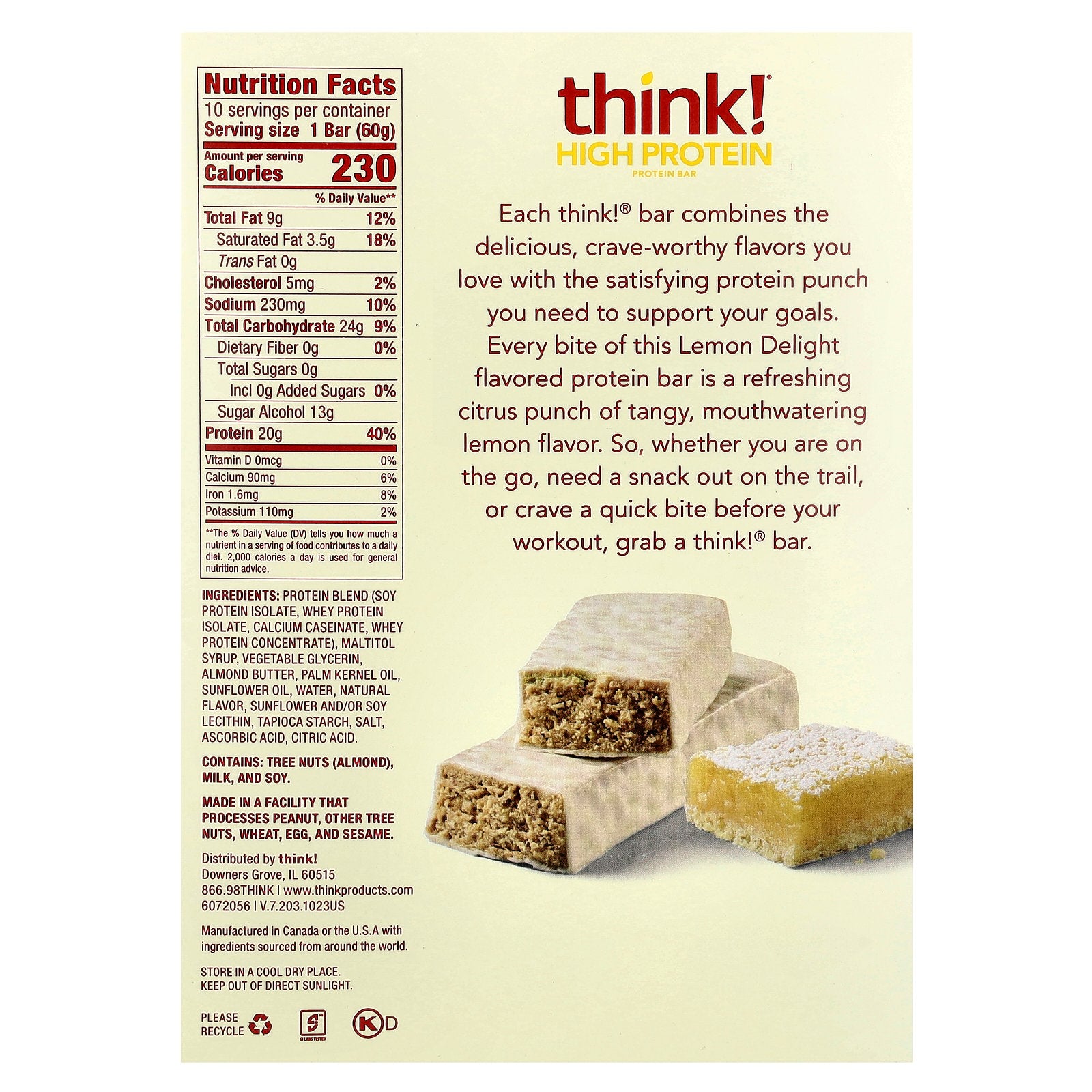 Each think!® bar combines the delicious, crave-worthy flavors you love with the satisfying protein punch you need to support your goals. Every bite of this Lemon Delight flavored protein bar is a refreshing citrus punch of tangy, mouthwatering lemon flavor. So, whether you are on the go, need a snack out on the trail, or crave a quick bite before your workout, grab a think!® bar.