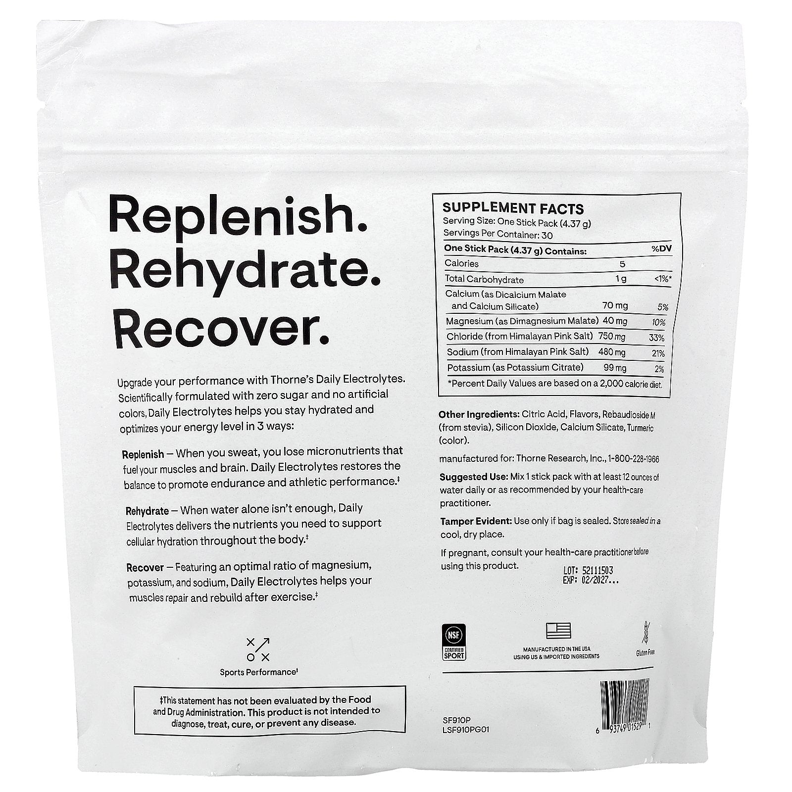 Replenish - When you sweat, you lose micronutrients that fuel your muscles and brain. Daily Electrolytes restores the balance to promote endurance and athletic performance.