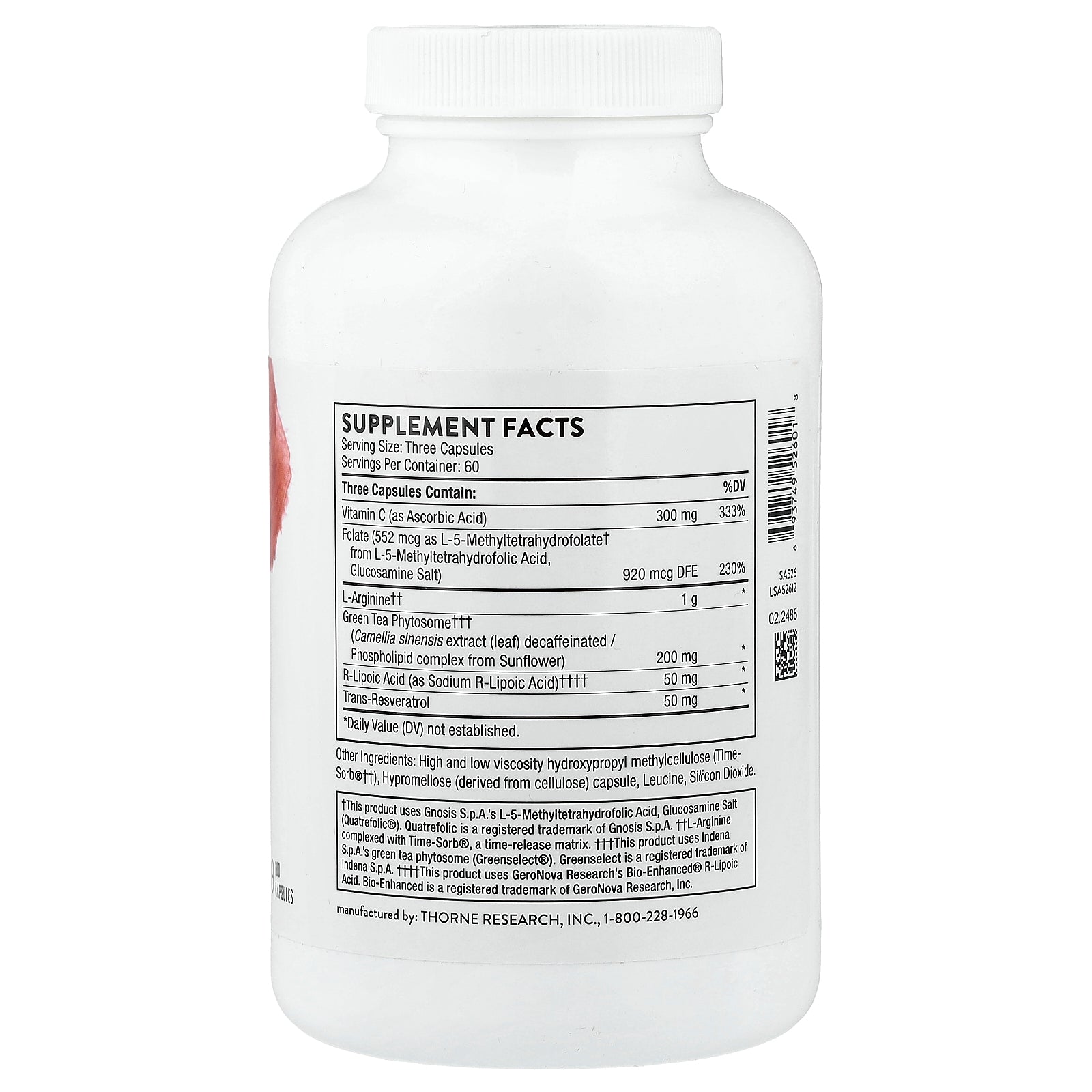 | *Daily Value (DV) not established. †This product uses Gnosis S.p.A's L-5-Methyltetrahydrofolic Acid, glucosamine Salt (Quatrefolic). †††This product uses Indena S.p.A.'s green tea phytosome (greenselect®). ††††This product uses GeroNova research's Bio-Enhanced R-lipoic acid. | ||