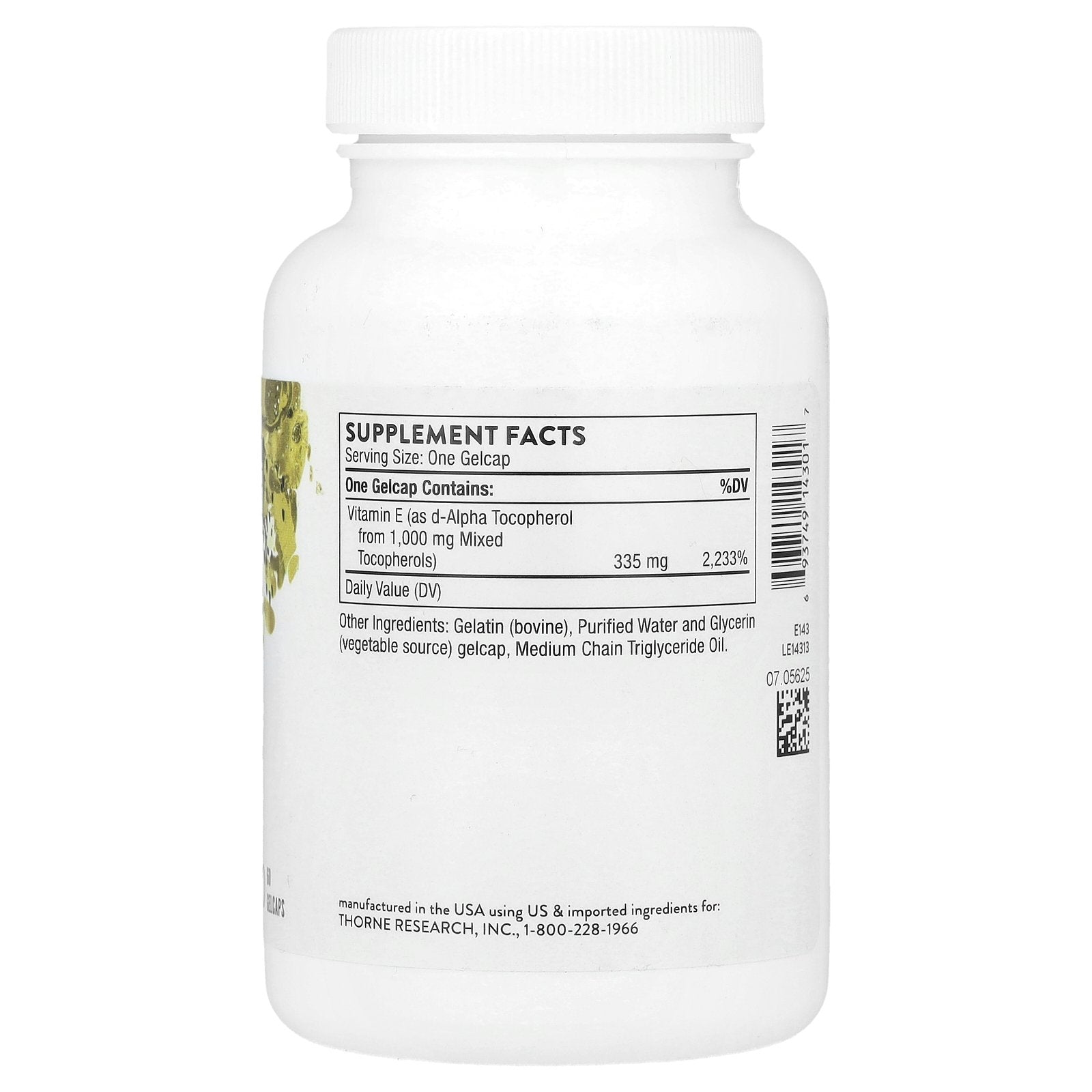 | Vitamin E (as d-Alpha Tocopherol from 1,000 mg Mixed Tocopherols) | 335 mg | 2,233% |
