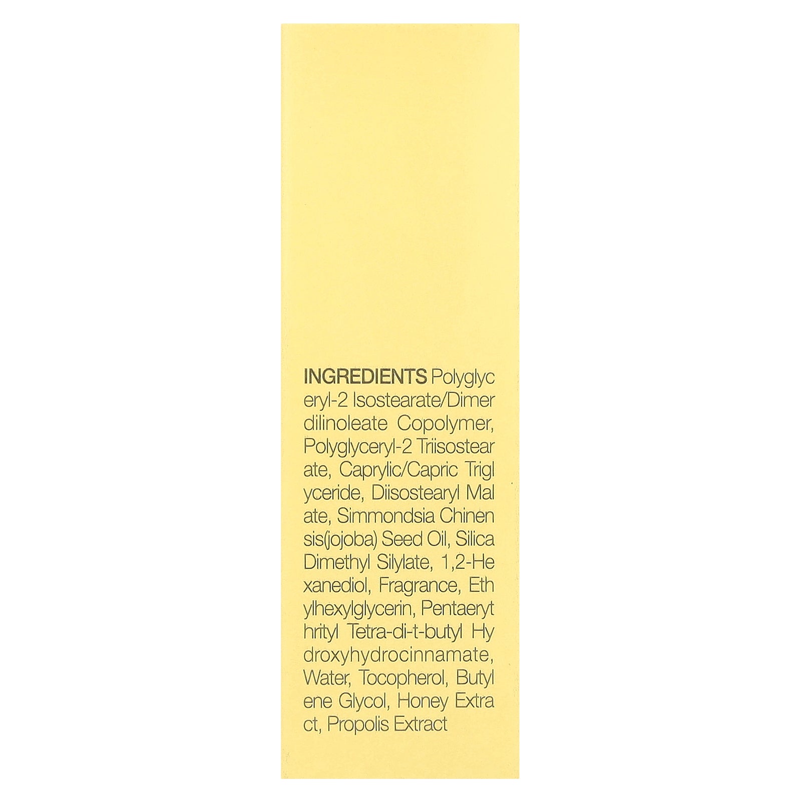 Polyglyceryl-2 isostearate/dimer dilinoleate copolymer, polyglyceryl-2 triisostearate, caprylic/capric triglyceride, diisostearyl malate, simmondsia chinensis (jojoba) seed oil, silica dimethyl silylate, 1,2-hexanediol, fragrance, ethylhexylglycerin, pentaerythrityl tetra-di-t-butyl hydroxyhydrocinnamate, water, tocopherol, butylene glycol, honey extract, propolis extract.