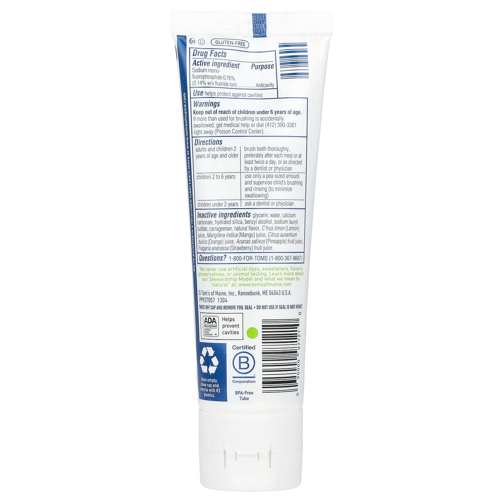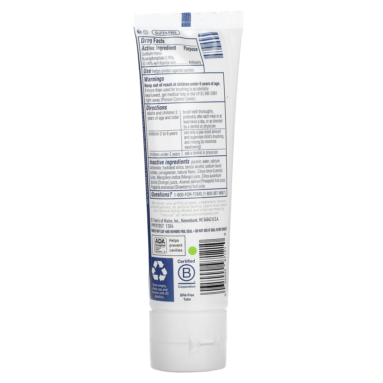 Glycerin, water, calcium carbonate, hydrated silica, benzyl alcohol, sodium lauryl sulfate, carrageenan, natural flavor, citrus limon (lemon) juice, mangifera indica (mango) juice, citrus aurantium dulcis (orange) juice, ananas sativus (pineapple) fruit juice, fragaria ananassa (strawberry) fruit juice. |