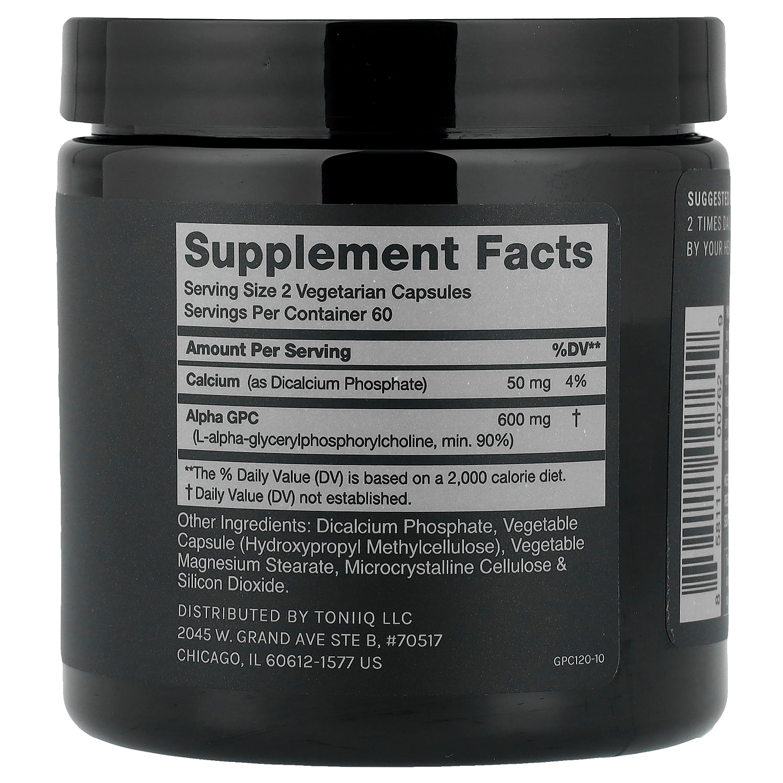 Toniiq Alpha GPC capsules contain 600mg of the highest quality Alpha GPC in each serving. Our Alpha-GPC contains an unprecedented purity level of 90%+ (most alpha gpc and choline products contain less than 50%).