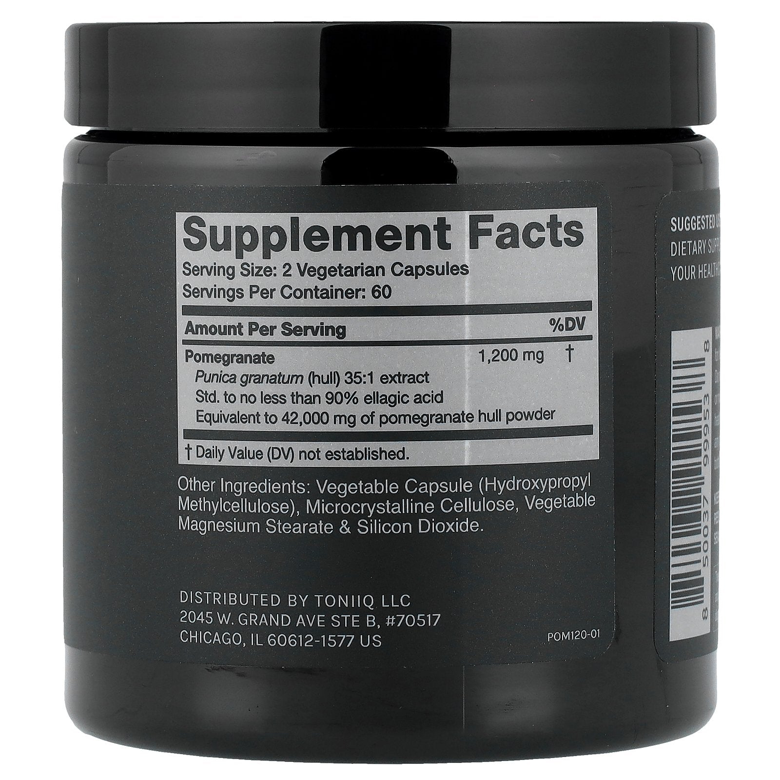 Pomegranate Punica granatum (hull) 35:1 extract Std. to no less than 90% ellagic acid Equivalent to 42,000 mg of pomegranate hull powder |
