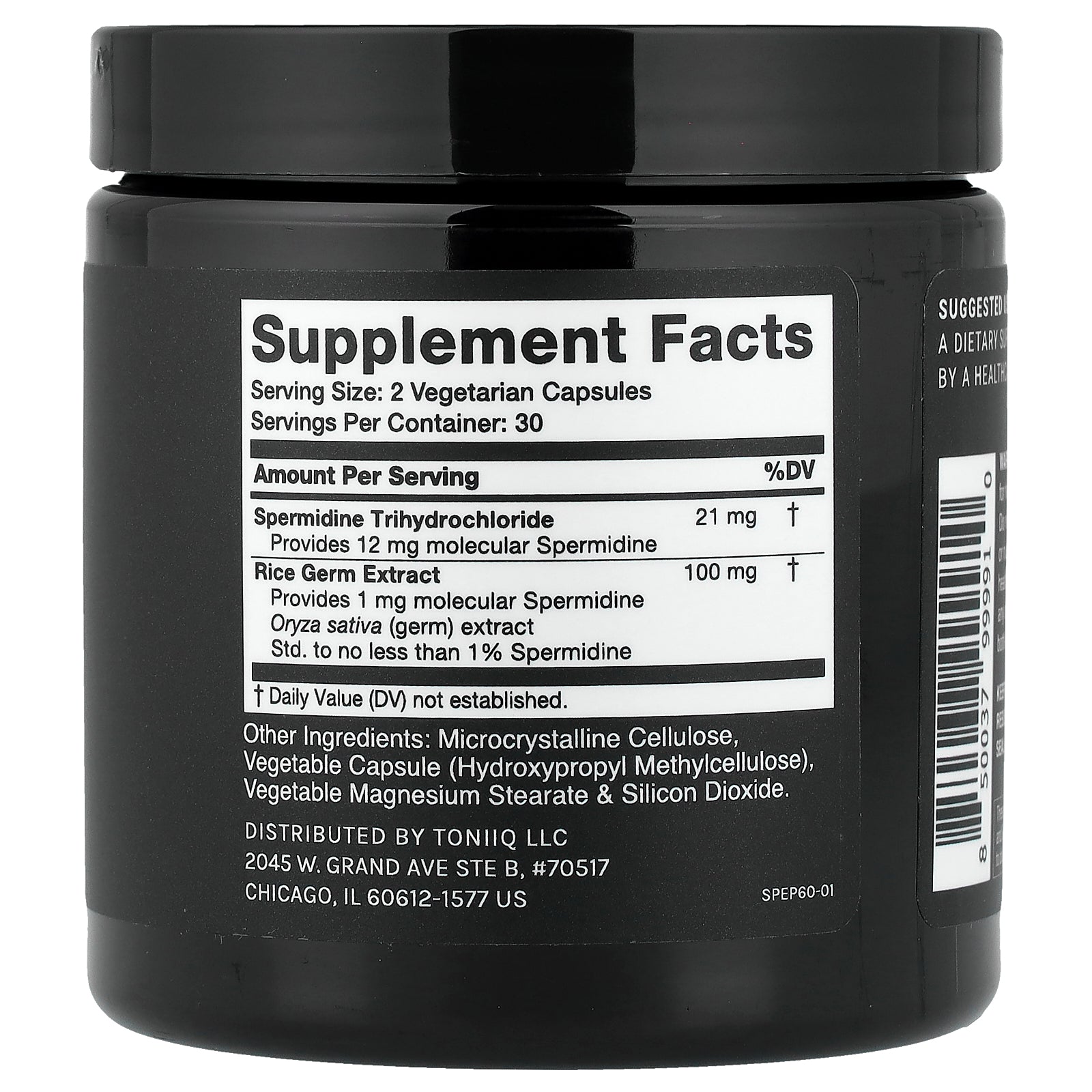 Toniiq Ultra-High Strength Spermidine contains 22mg of active spermidine in the form of both spermidine trihydrochloride and rice-germ extract, delivering the highest spermidine content on the market.