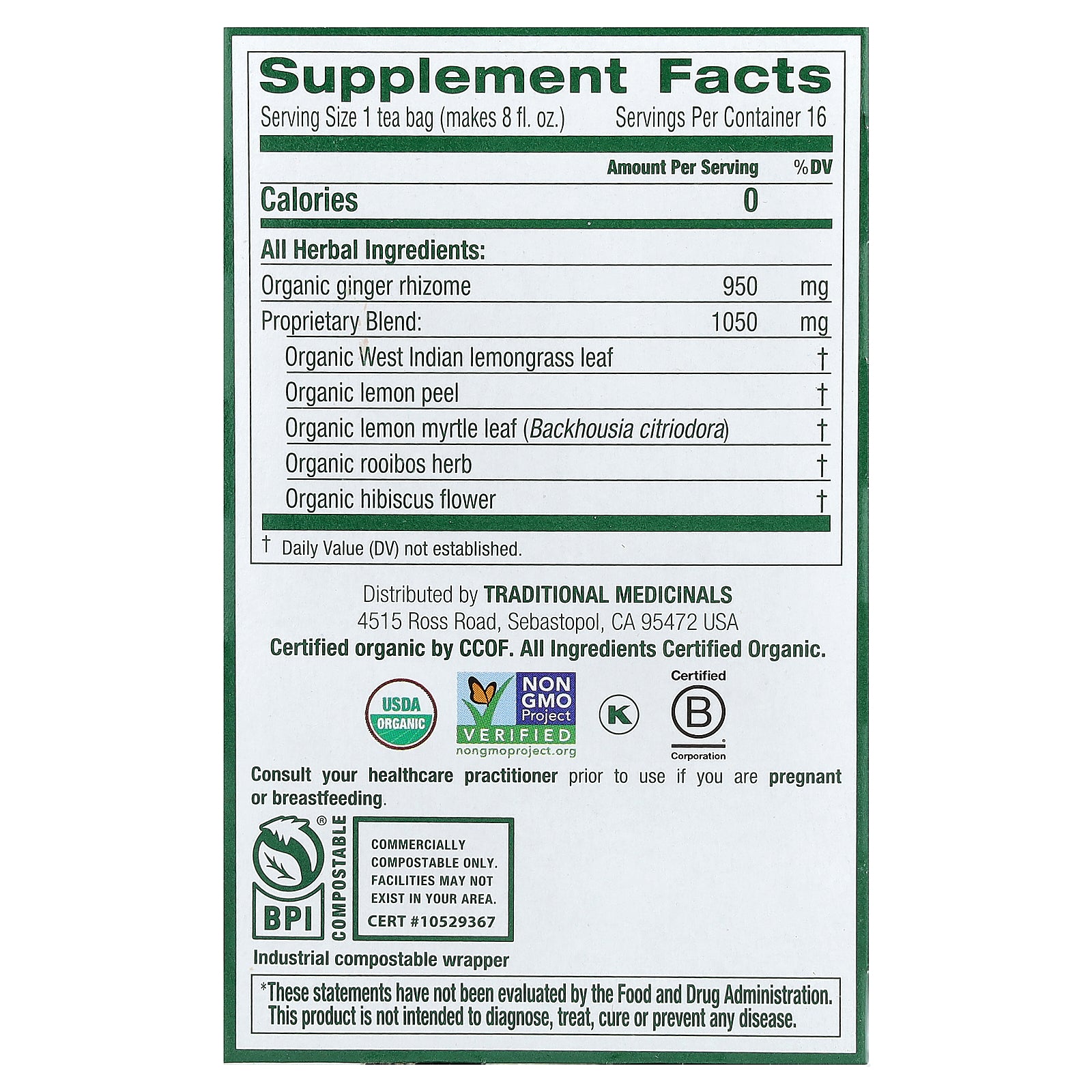 | Serving Size: 1 tea bag (makes 8 fl. oz) | ||