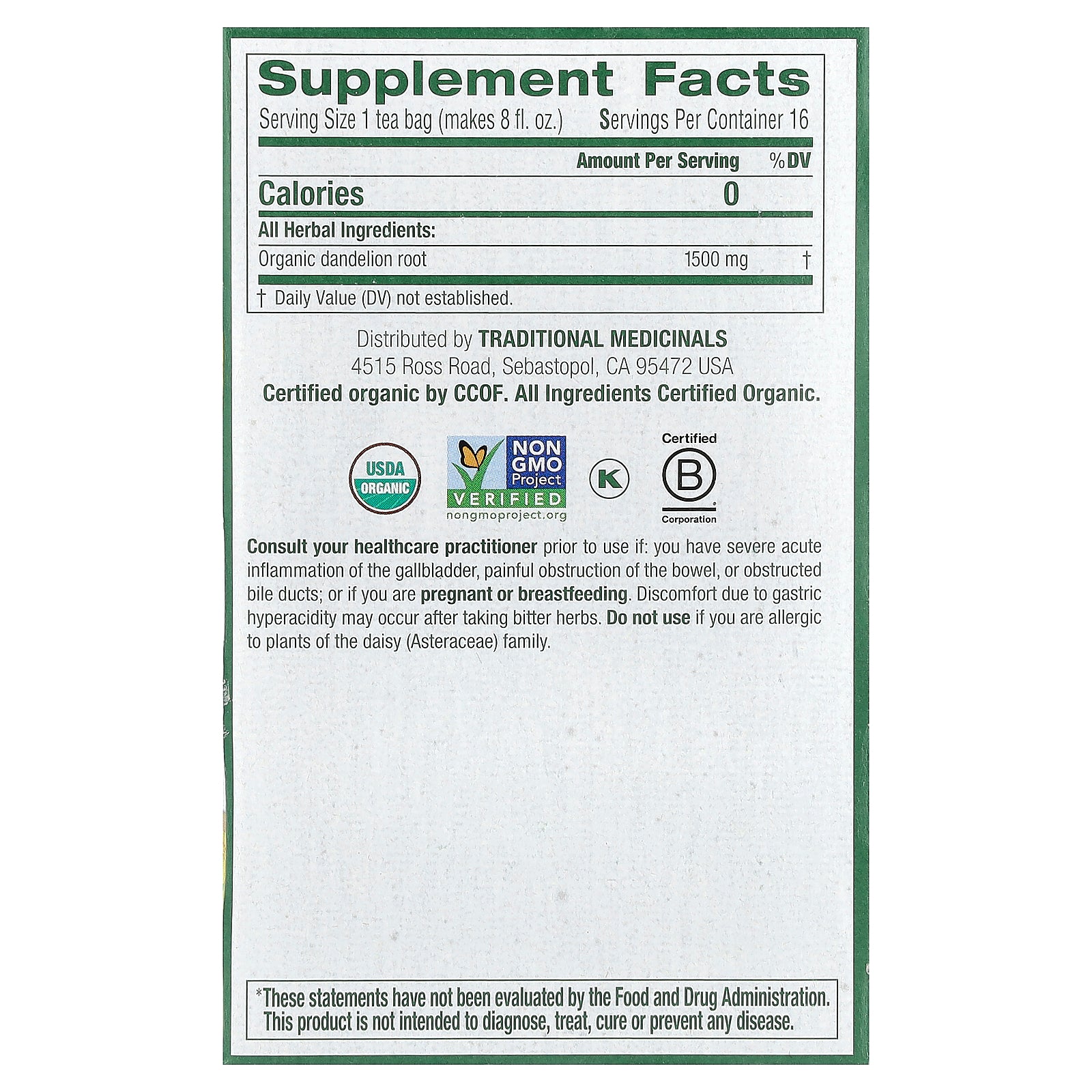 | Serving Size: 1 tea bag (makes 8 fl oz) | ||