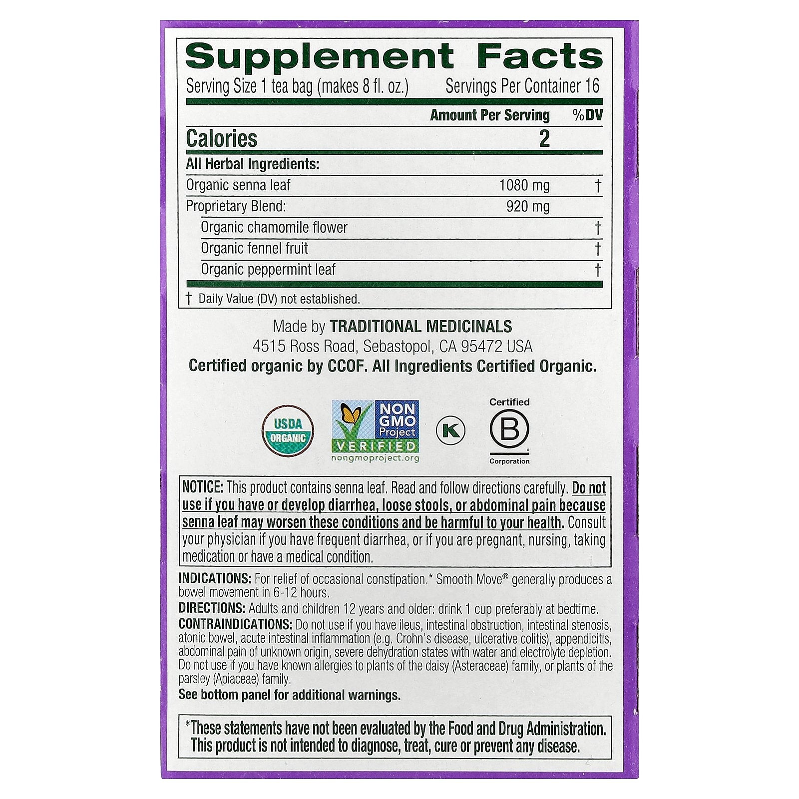 Indications: For relief of occasional constipation. Smooth Move® generally produces a bowel movement in 6-12 hours.