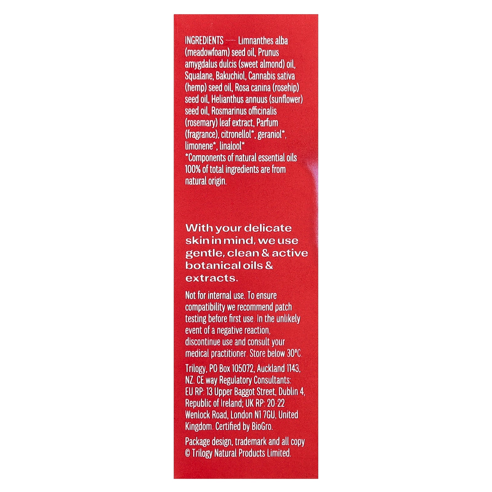 Not for internal use. To ensure compatibility we recommend patch testing before first use. In the unlikely event of a negative reaction, discontinue use and consult your medical practitioner. Store below 30℃