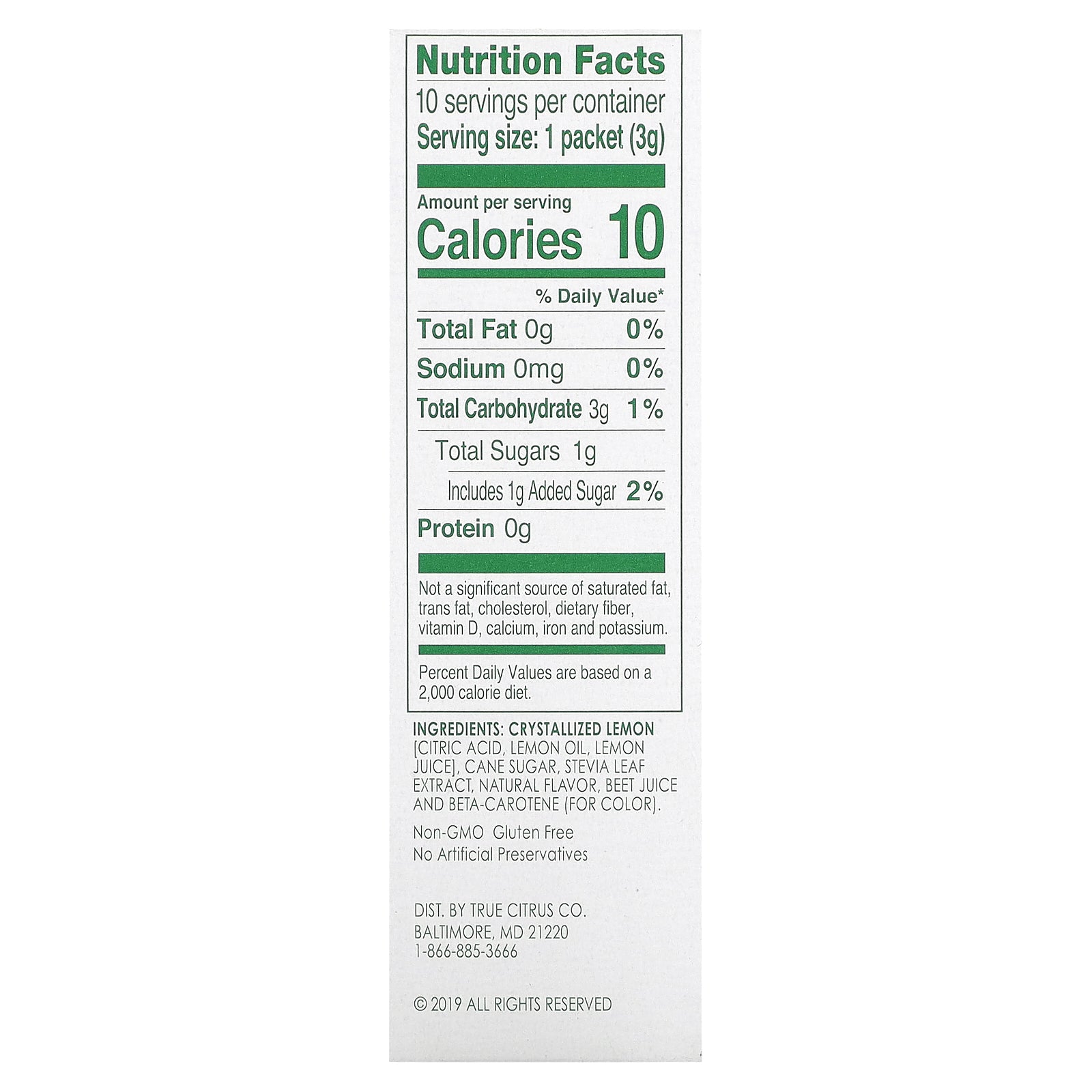 Crystallized lemon [citric acid, lemon oil, lemon juice], cane sugar, stevia leaf extract, natural flavor, beet juice and beta-carotene (for color).