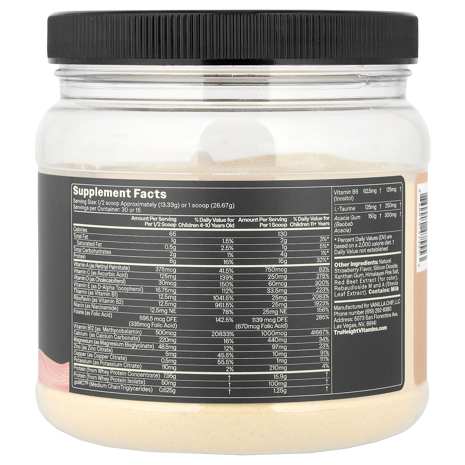 Nutrients for Growth & Development: One scoop of our Strawberry Milk contains a blend of vitamins and minerals including 16 g of Protein, 10 mg of Zinc, 210 mg of Potassium, 75 mcg RAE of Vitamin A, 250 mg of Vitamin C, 60 mcg of Vitamin D and 33.5 mg of Vitamin E per serving.