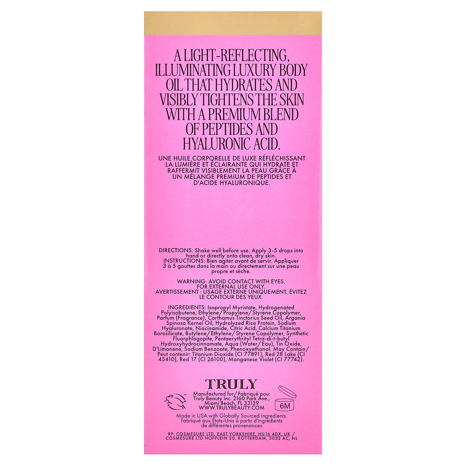 A light-reflecting illuminating luxury body oil that hydrates and visibly tightens the skin with a premium blend of peptides and hyaluronic acid.
