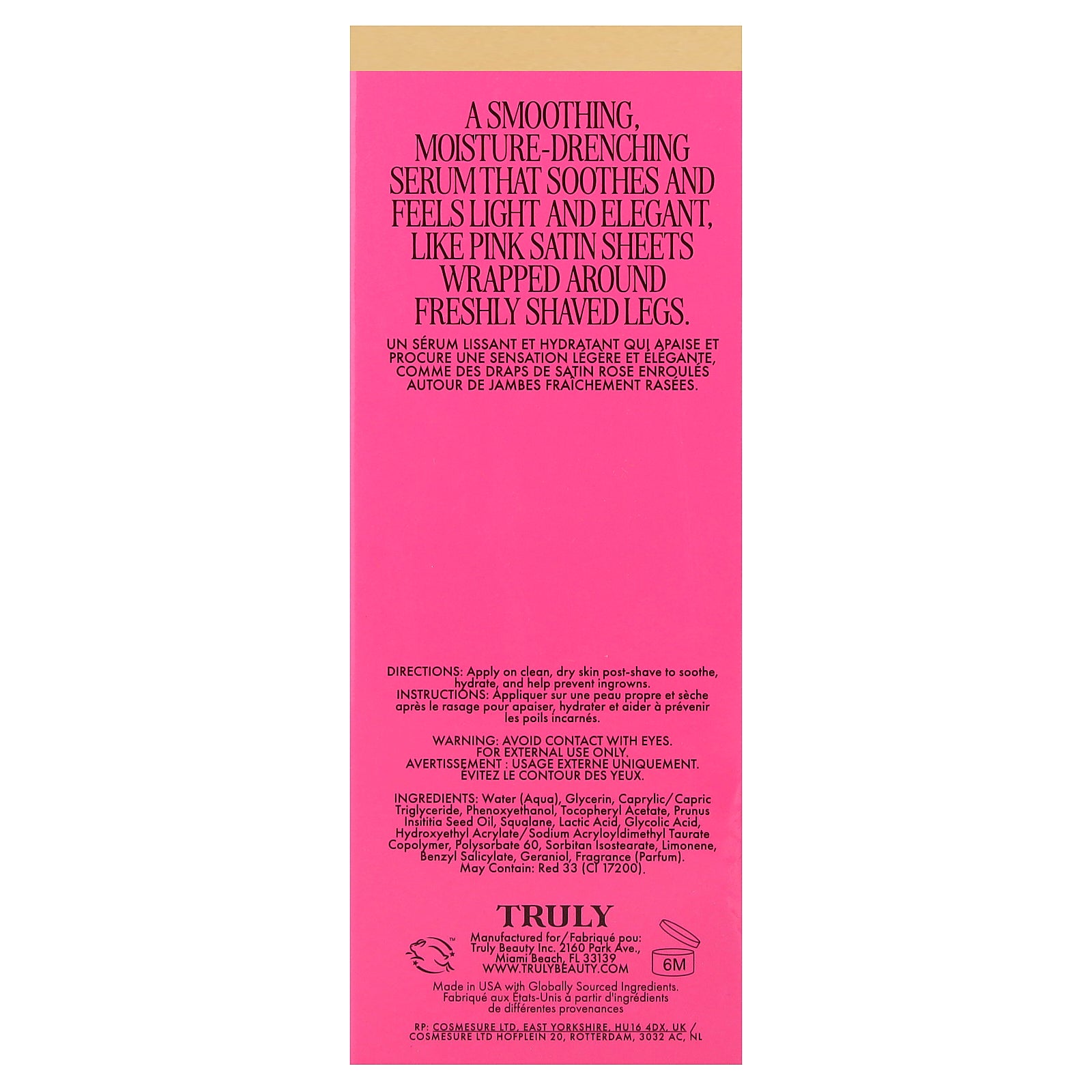 A smoothing moisture-drenching serum that soothes and feels light and elegant, like pink satin sheets wrapped around freshly shaved legs.