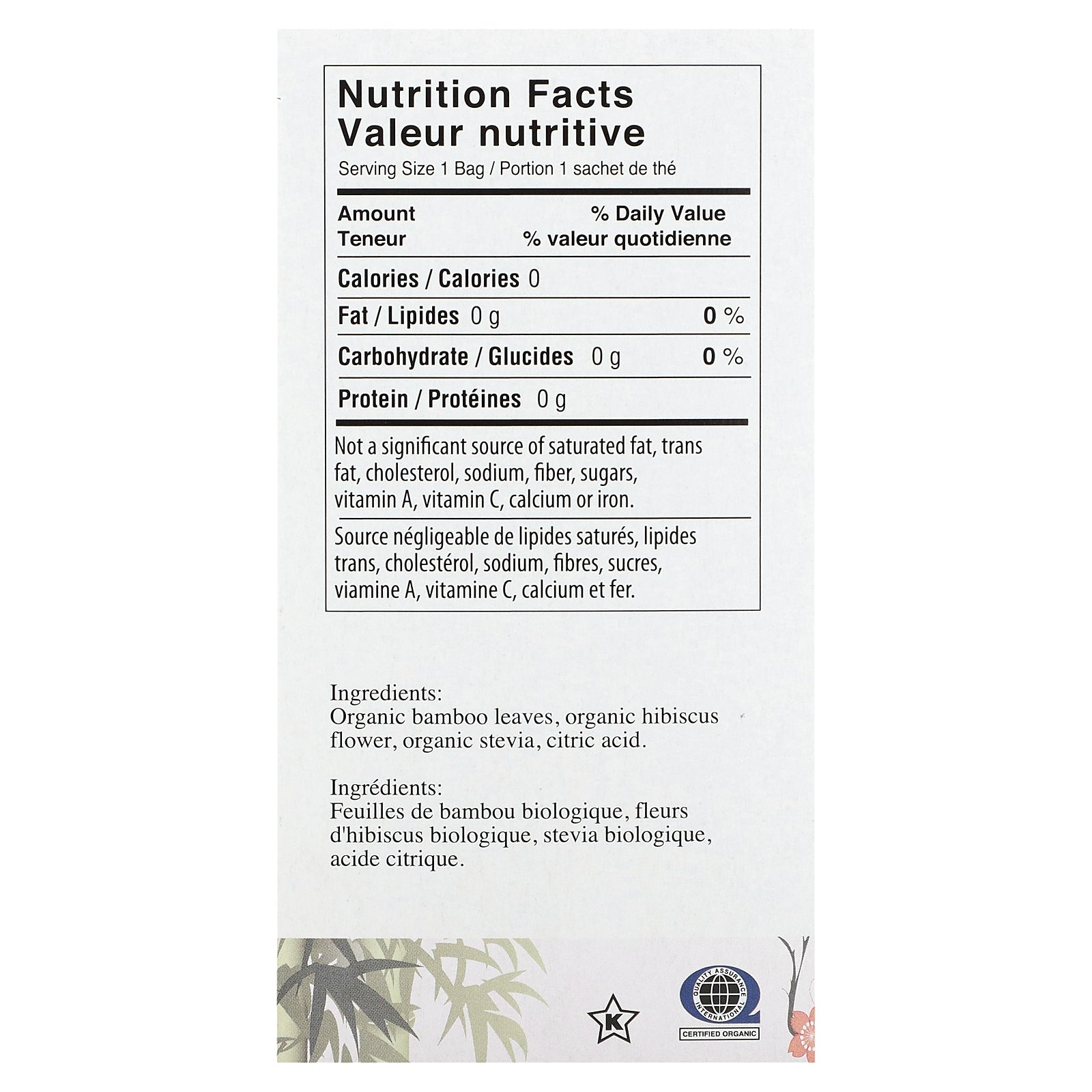 Organic bamboo leaves, organic hibiscus flower, organic stevia, citric acid.
