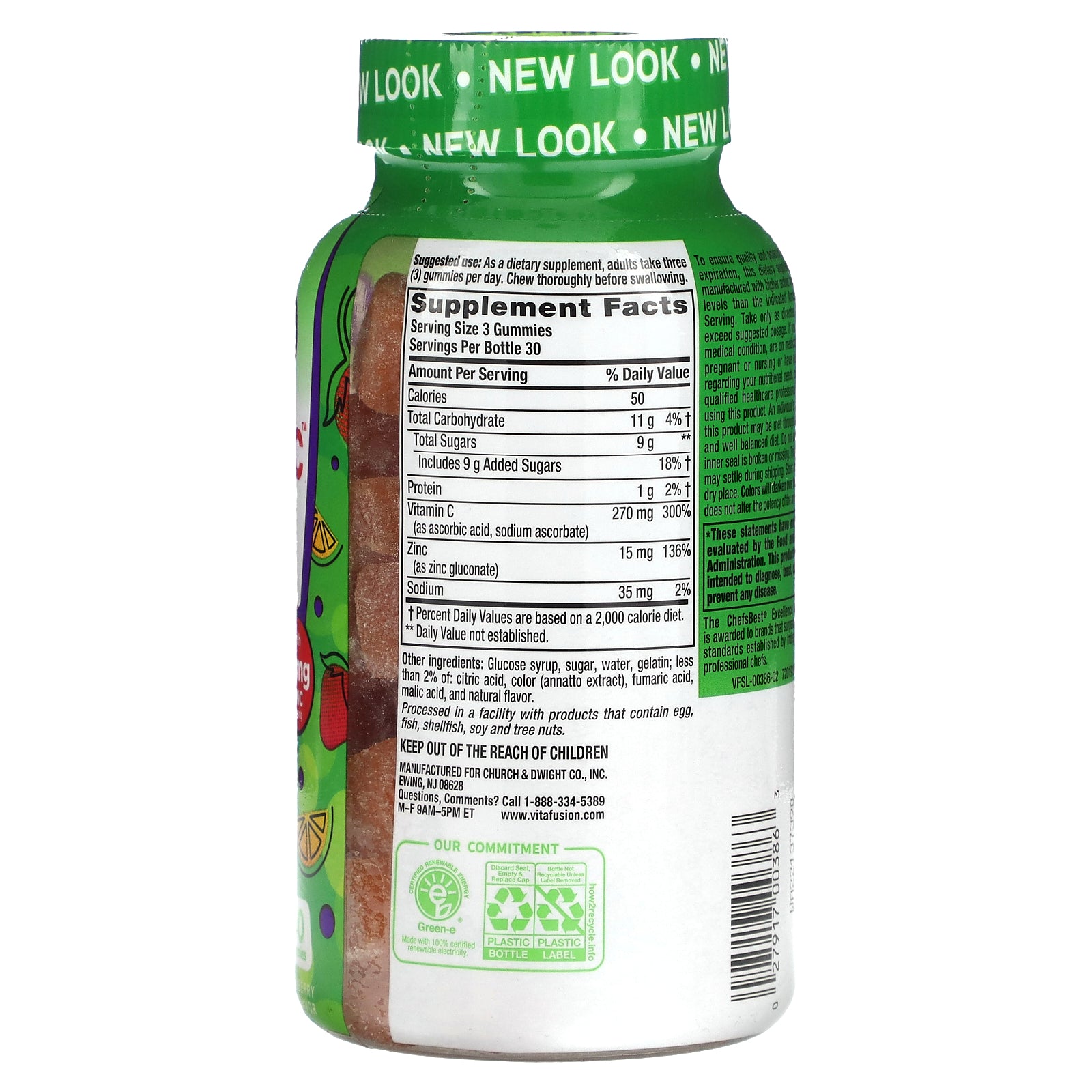 Vitafusion Power Zinc™ fuses together high potency Zinc plus 270 mg of vitamin C per serving for immune support all in a delicious natural strawberry tangerine flavored gummy! Supporting your immune health has never been so easy or tasty!