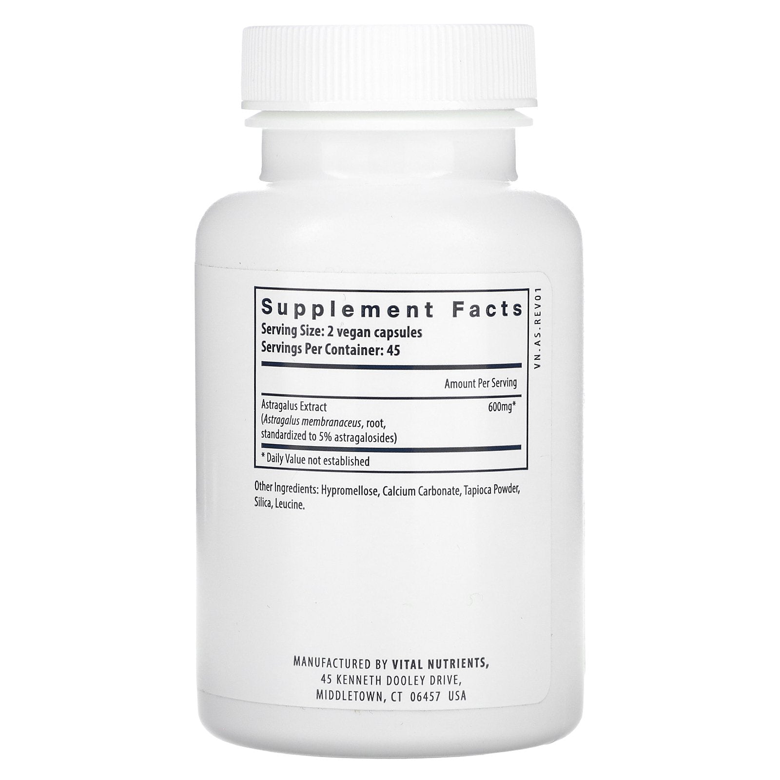 Astragalus Root Extract is a Chinese herb used to support the immune system, promoting normal levels of antibodies, macrophages and immune messenger molecules. In Traditional Chinese Medicine, Astragalus is used to tonify the spleen, the qi (vital energy), and the blood. Astragalus Extract has antioxidant effects and helps inhibits free radical production and lipid peroxidation. It is also very high in trace minerals and micronutrients. Some preliminary research suggests Astragalus Extract may help support normal blood sugar levels. Vital Nutrients Astragalus Extract capsules are vegetarian.