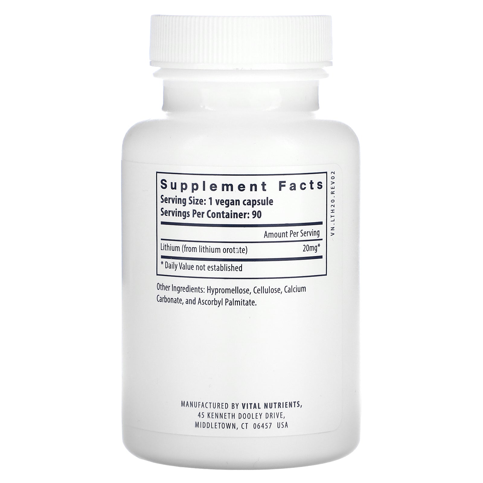 Lithium is an alkali metal found in trace amounts of most rocks, as well as mineral springs, ocean water, and nearly all vertebrate tissue. Vital Nutrients offers low-dose lithium supplied as lithium orotate, a bioavailable salt. Lithium supports the phosphoinositol pathway. Lithium may be used to promote a healthy balanced mood and behavior. Additionally, Lithium may help resist both the mental and physical effects of stress.