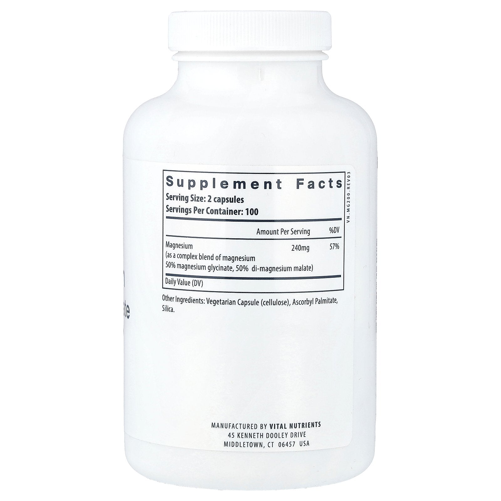 | Magnesium (as a complex blend of magnesium 50% magnesium glycinate, 50% di-magnesium malate) | 240 mg | 57% |