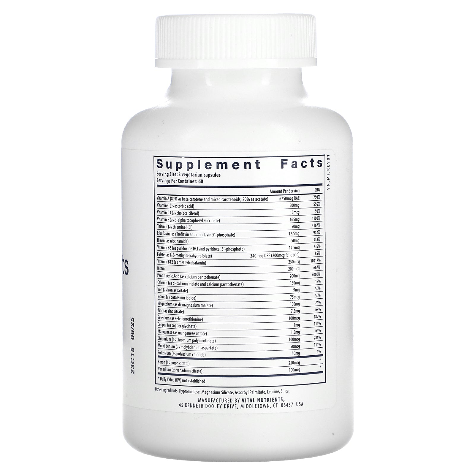Multi-Nutrients with Iron and Iodine is a high potency multi-vitamin/mineral and trace element formula that provides the highest nutritional value for all systems of the body, including bone, skin, cardiovascular, liver, and immune support. This formula incorporates premium ingredients to ensure optimal absorption and physiological activity, including folate as Metafolin® L-5-MTHF, Vitamin D3, potent antioxidants and mineral amino acid chelates. This formula is identical to Multi-Nutrients, with the addition of iron and iodine.
