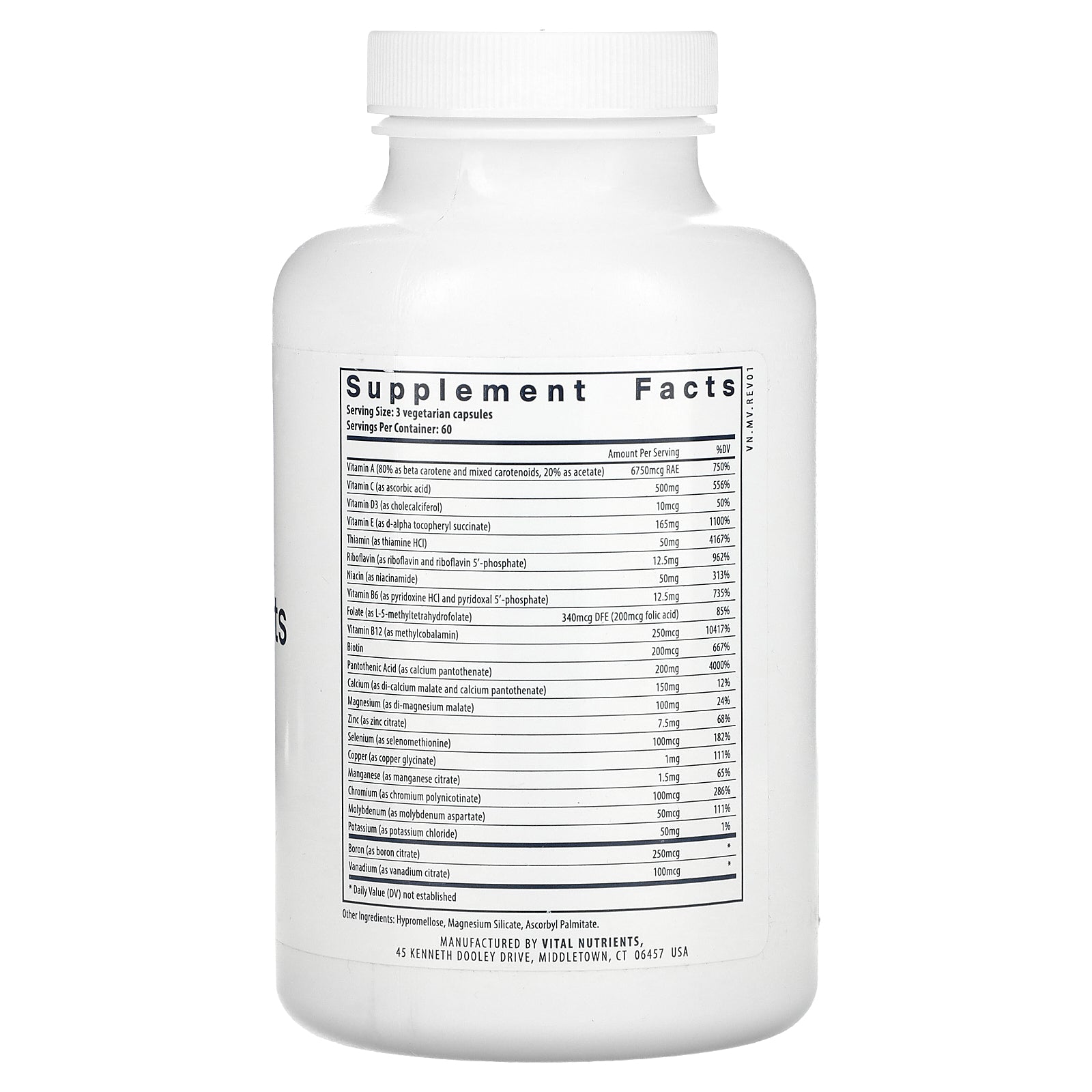 Multi-Nutrients (no iron or iodine) is a high potency multivitamin/mineral and trace element formula that provides the highest nutritional value for all systems of the body, including bone, skin, cardiovascular, liver, and immune support. This formula incorporates premium ingredients to ensure optimal absorption and physiological activity, including folate as Metafolin® L-5-MTHF, Vitamin D3, potent antioxidants and mineral amino acid chelates. Multi-Nutrients (no iron or iodine) is a bioavailable formula that is well tolerated by most individuals. It comes in easy-to-digest vegetarian capsules.