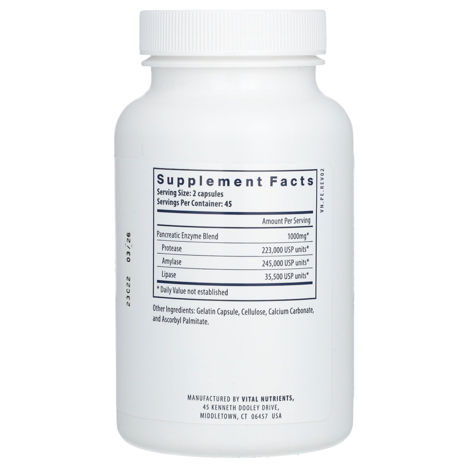 Some people do not produce enough enzymes to digest the nutrients in their food, which can lead to digestive discomfort. Pancreatic Enzymes supports healthy digestion by supplying natural enzymes that are secreted by the pancreas. These enzymes are essential to the breakdown and absorption of food and its nutrients, helping to promote the normal digestion of proteins, fats and carbohydrates. Taking pancreatic enzymes supplements can help support healthy digestion and may help relieve occasional gas and bloating.
