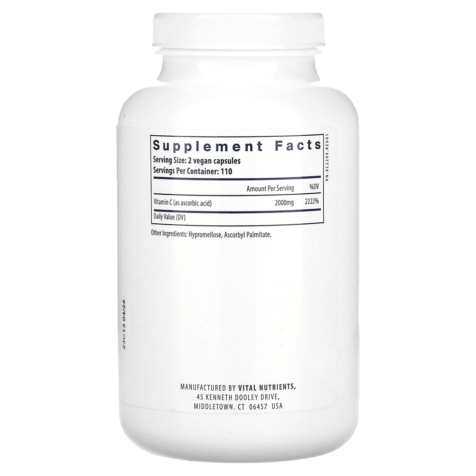 Vitamin C (100% pure ascorbic acid) helps the body’s immune system by supporting antibody responses, white blood cell function and activity, and helps maintain normal interferon levels. It is one of the most potent dietary antioxidants and provides nutritional support to all functions of the body. Vitamin C supports iron absorption from the gastrointestinal tract and is an important component of collagen synthesis. Vitamin C assists in tissue formation.It comes in easy-to-digest vegetarian capsules.