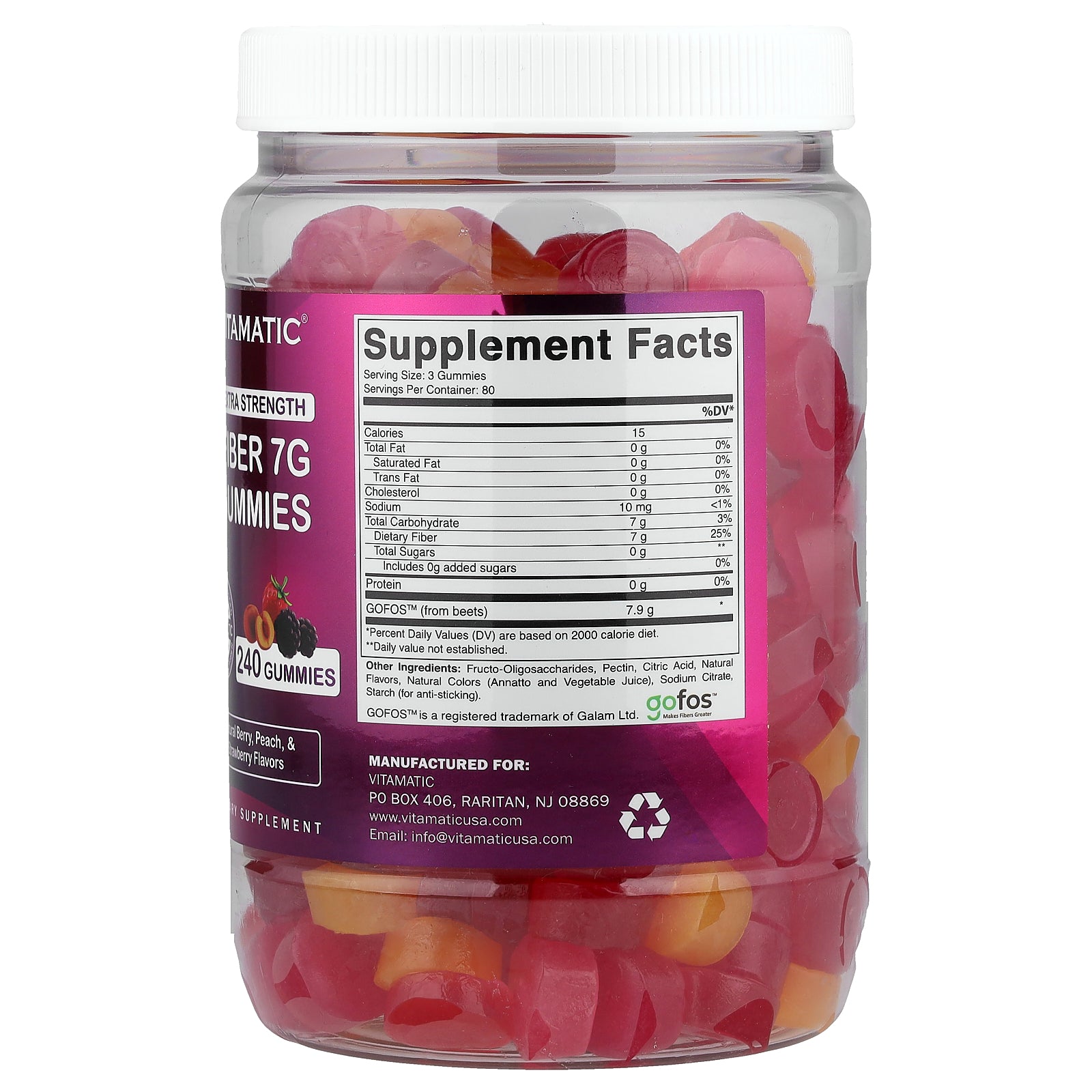 Vitamatic, Fiber Gummies, Natural Berry, Peach & Strawberry, 240 Gummies