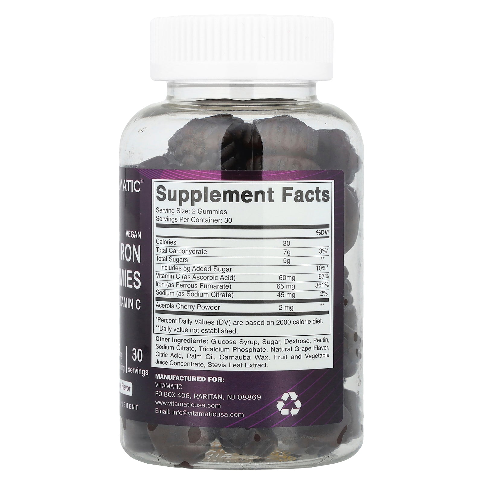 Vitamatic, Vegan Iron Gummies With Vitamin C, Natural Grape, 60 Gummies