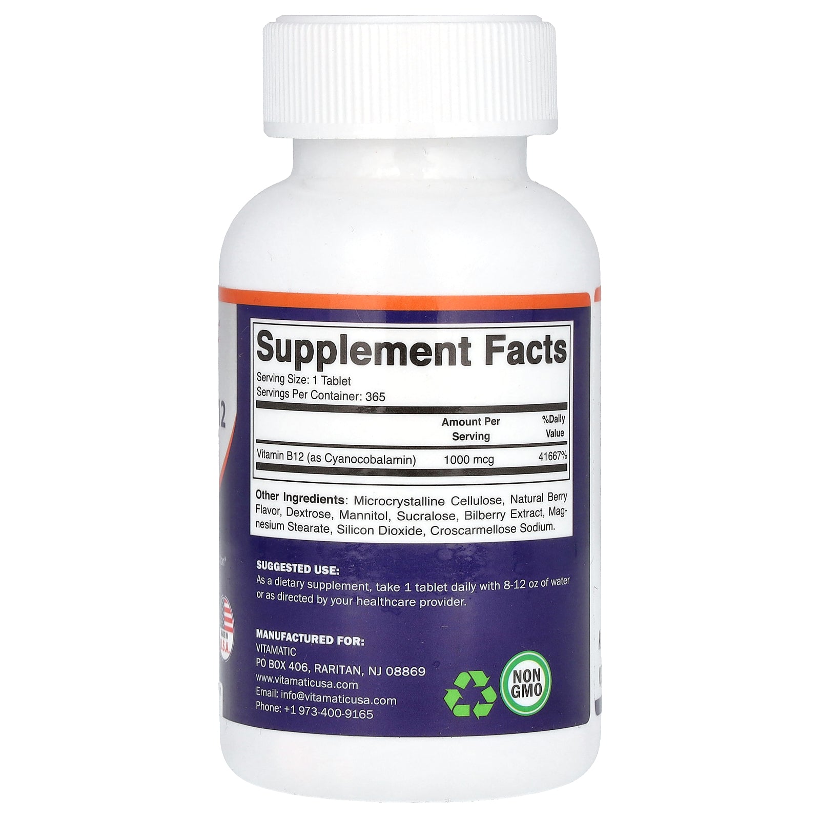 Vitamatic, Vitamin B12, Berry, 1,000 mcg, 365 Fast Dissolve Tablets