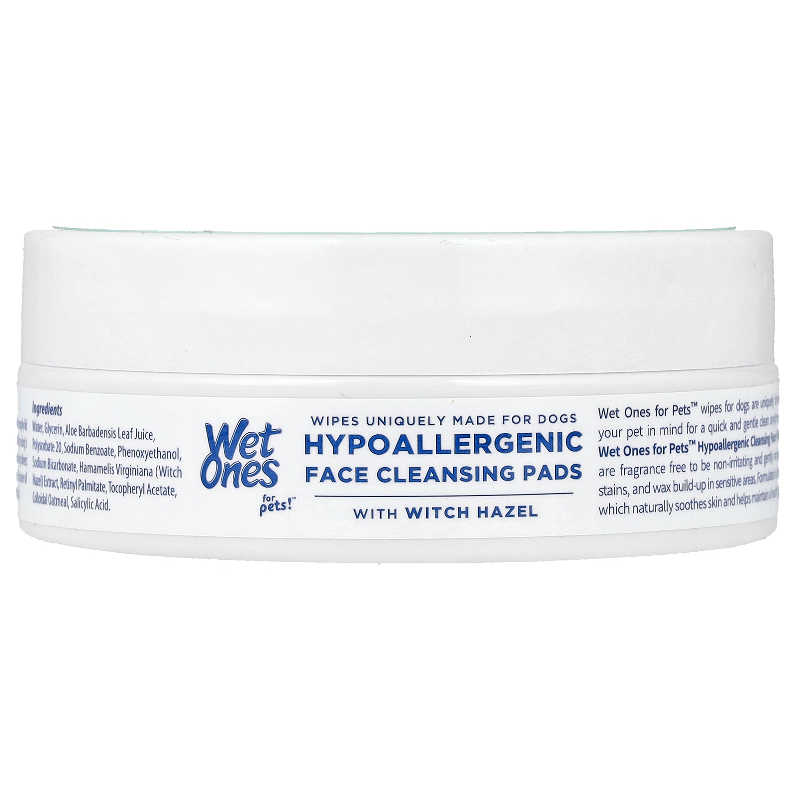 Wet Ones for Pets™ wipes for dogs are uniquely formulated with your pet in mind for a quick and gentle clean anytime, anywhere! Wet Ones for Pets™ Hypoallergenic Cleansing Face Pads for Dogs are fragrance free to be non-irritating and gently remove dirt, tear stains, and wax build-up in sensitive areas. Formulated with witch hazel, which naturally soothes skin and helps maintain a healthy, plush coat.