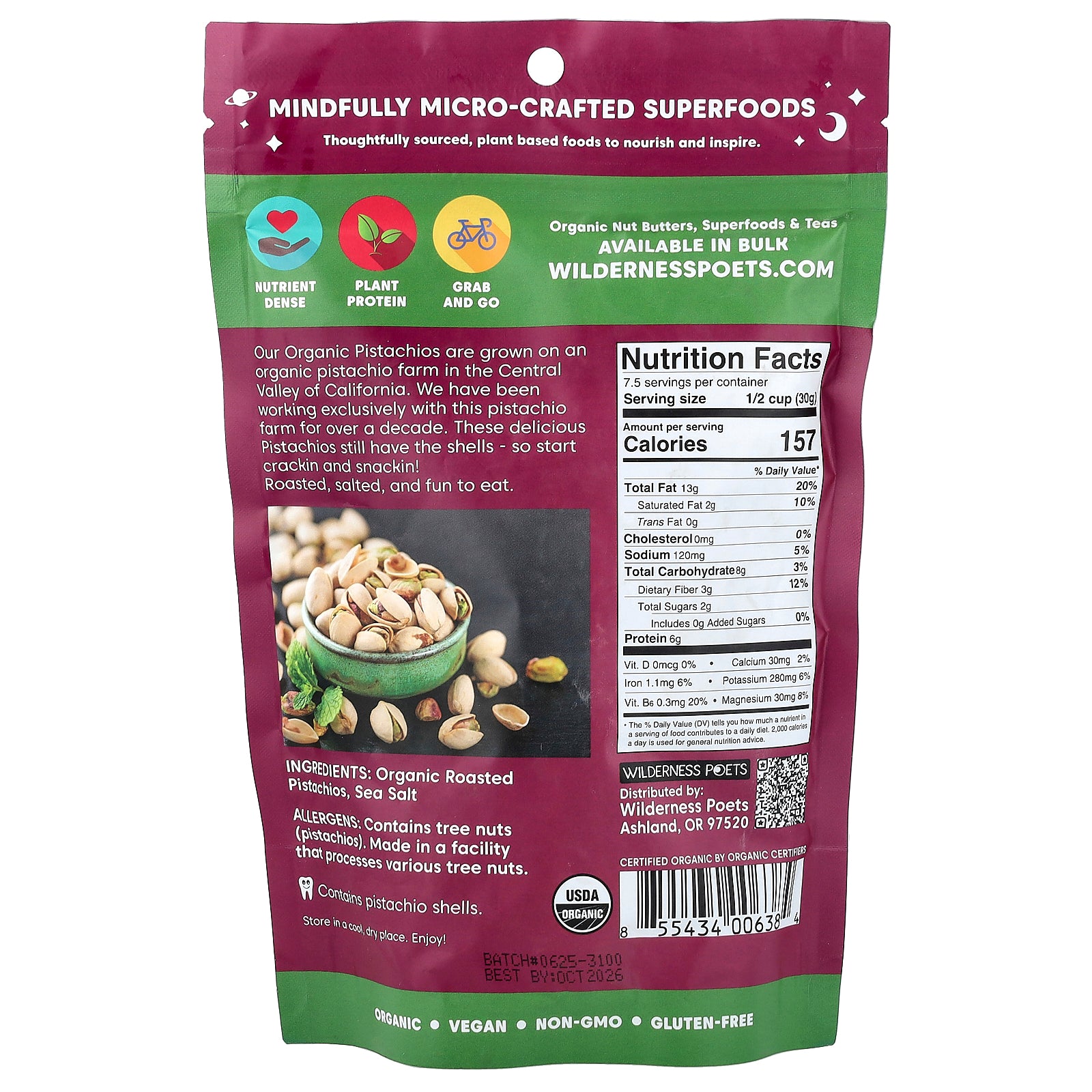 Our Organic Pistachios are grown on an organic pistachio farm in the Central Valley of California. We have been working exclusively with this pistachio farm for over a decade. These delicious Pistachios still have the shells - so start crackin and snackin! Roasted, salted, and fun to eat.