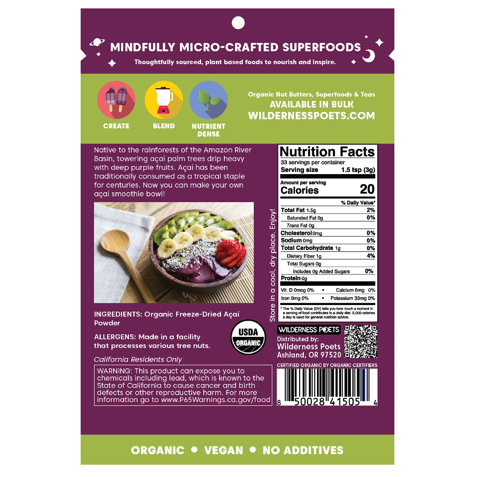 Organic freeze-dried acai powder.