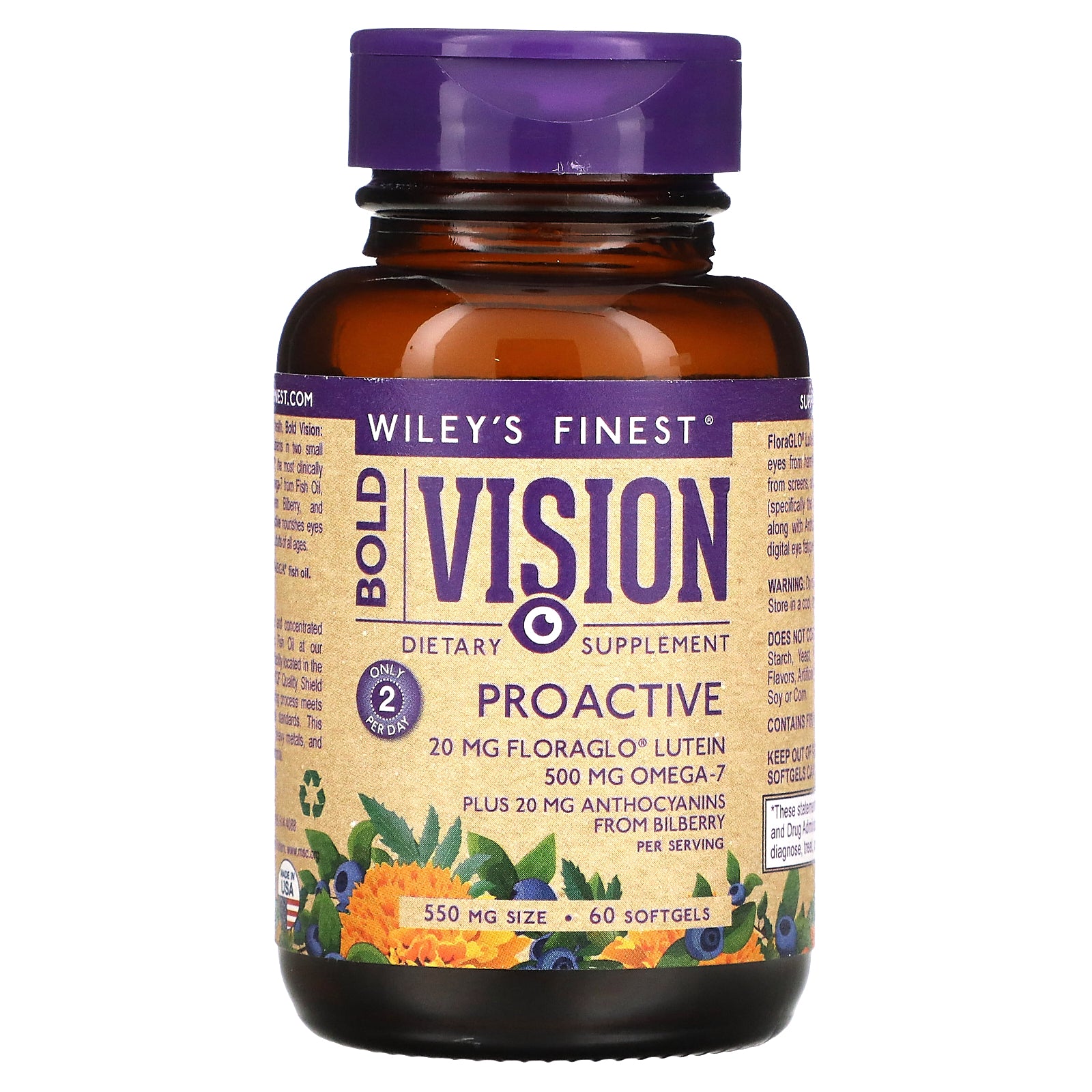 Bold Vision: Proactive delivers select nutrients in two small softgels. Featuring lutein, along with Omega-7 from Fish Oil, Anthocyanins from European Bilberry, and Astaxanthin from algae, Proactive helps protect eyes from harmful effects of high-energy blue light.