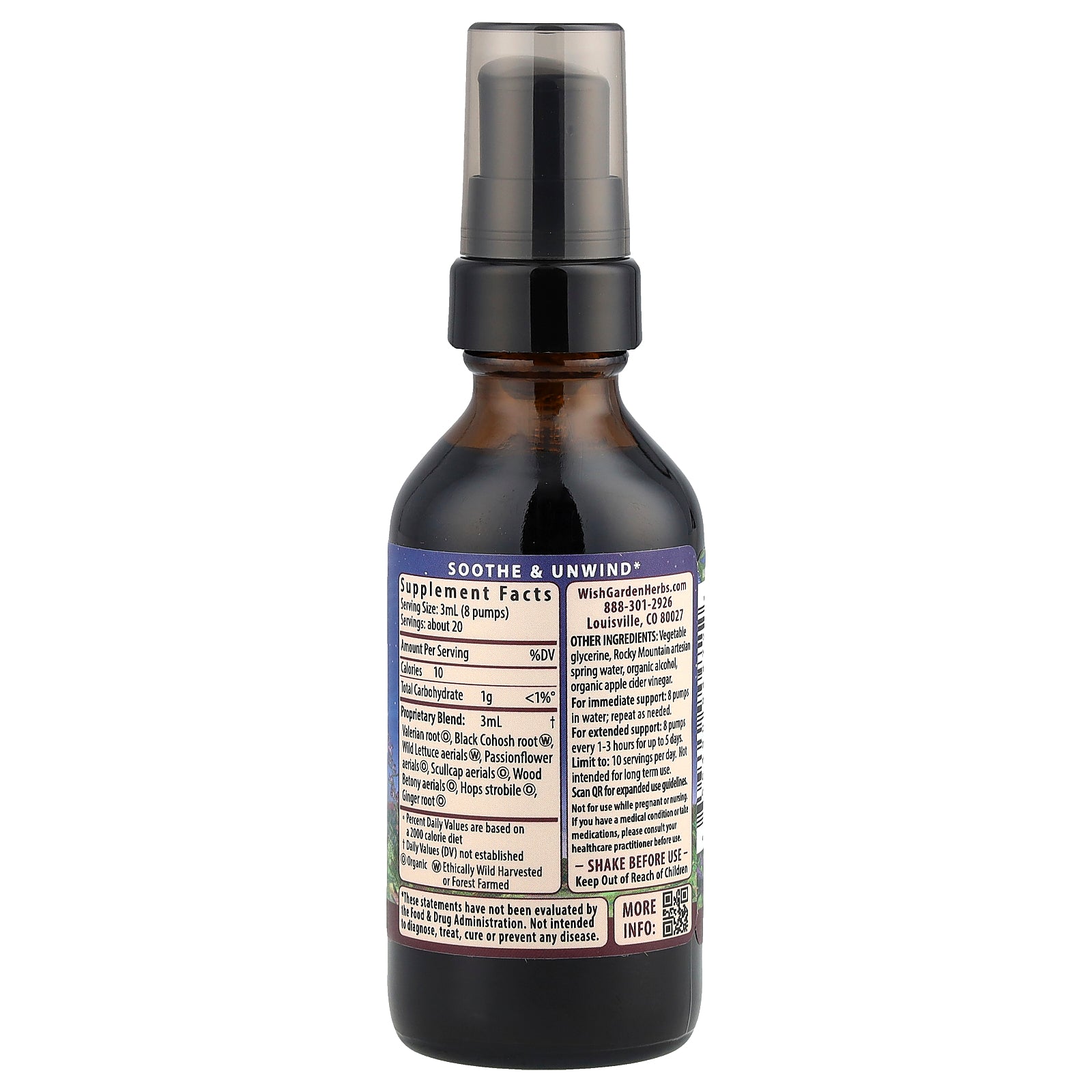 | Proprietary Blend: Valerian root (o), Black Cohosh root (W), Wild Lettuce aerials (W), Passionflower aerials (O), Scullcap aerials (O), Wood Betony aerials (O), Hops strobile (O), Ginger root (O) |