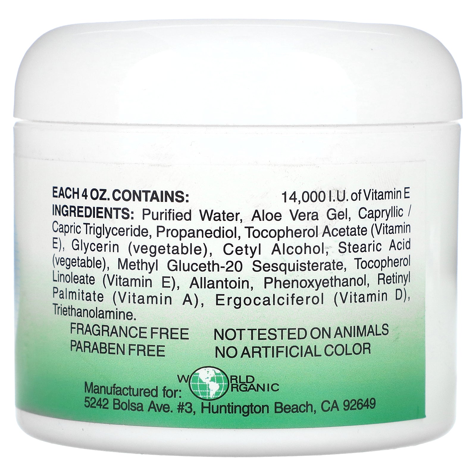 Purified water, aloe vera gel, caprylic capric triglyceride, propanediol, tocopherol acetate (vitamin E), glycerin (vegetable), cetyl alcohol, stearic acid (vegetable), methyl gluceth-20 sesquistearate, tocopherol linoleate (vitamin E), allantoin, phenoxyethanol, retinyl palmitate (vitamin a), ergocalciferol (vitamin D), triethanolamine