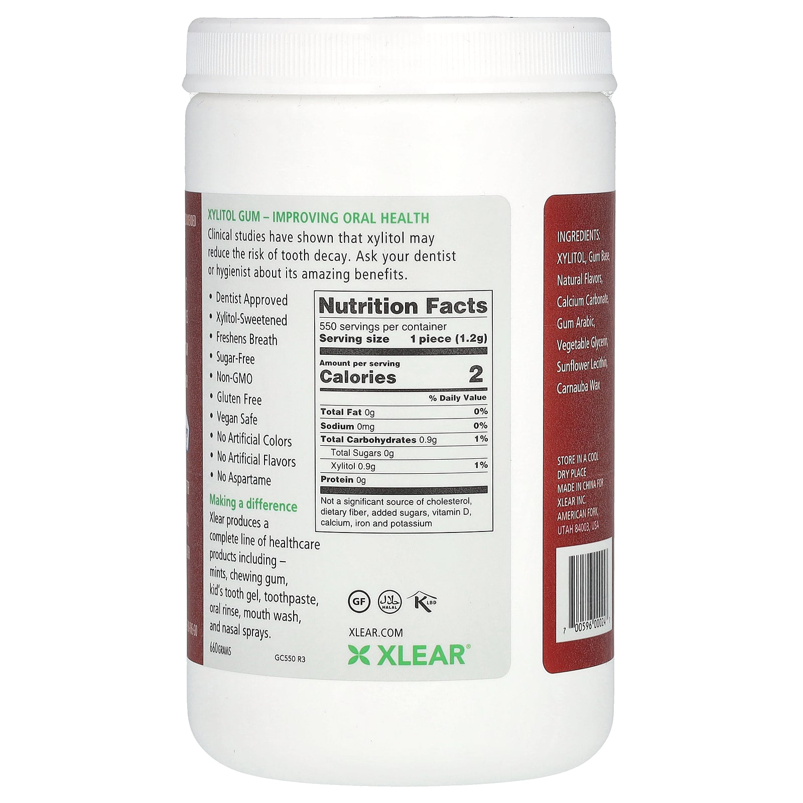 Xylitol, gum base, natural flavors, calcium carbonate, gum arabic, vegetable glycerin, sunflower lecithin, carnauba wax.